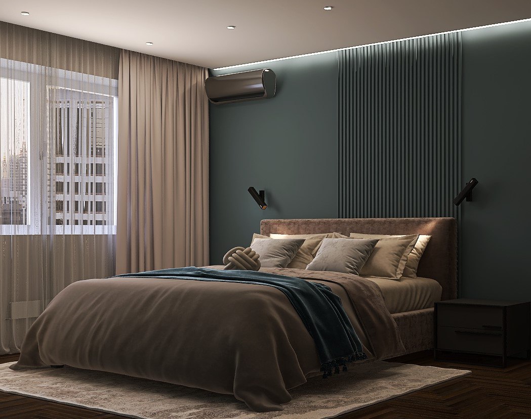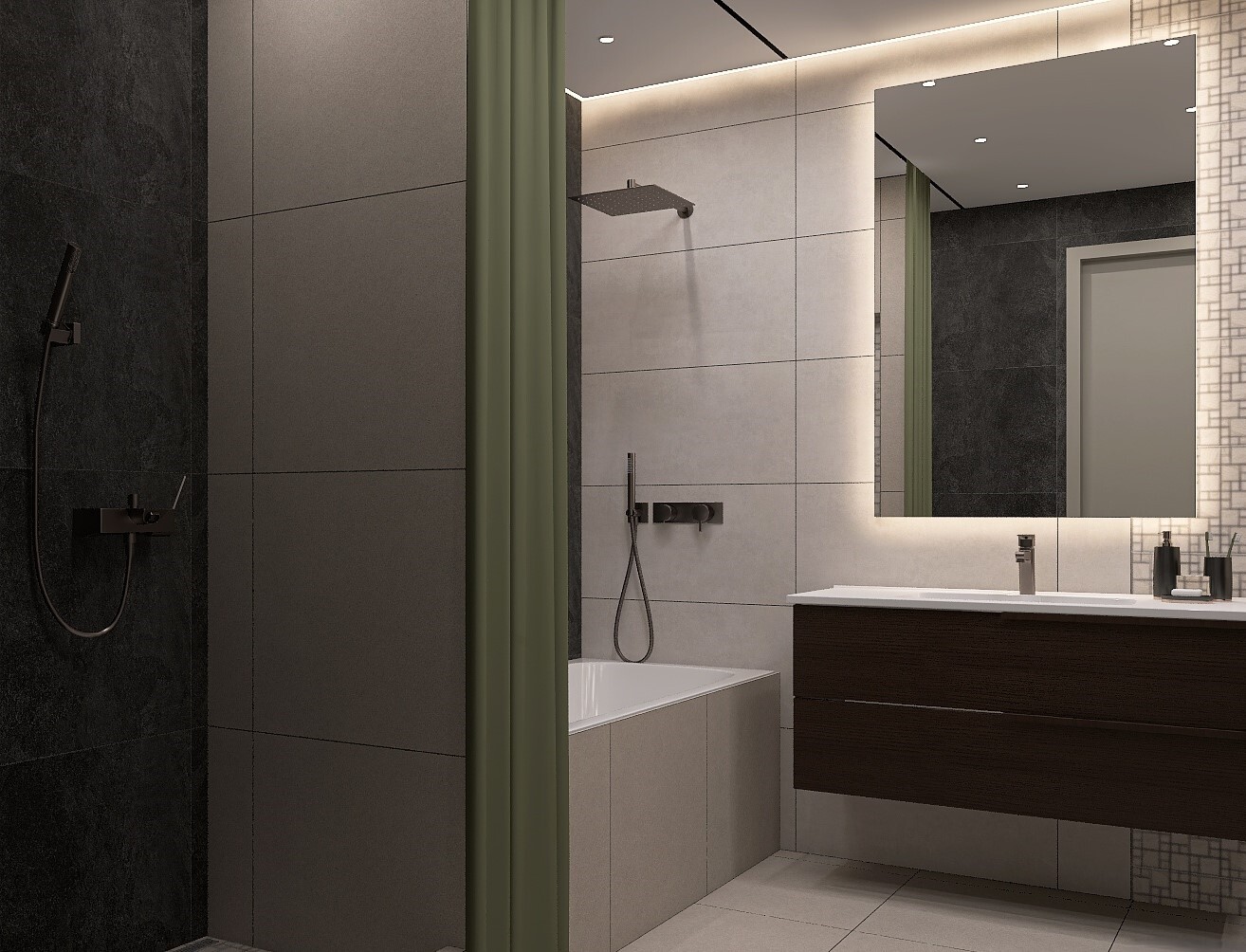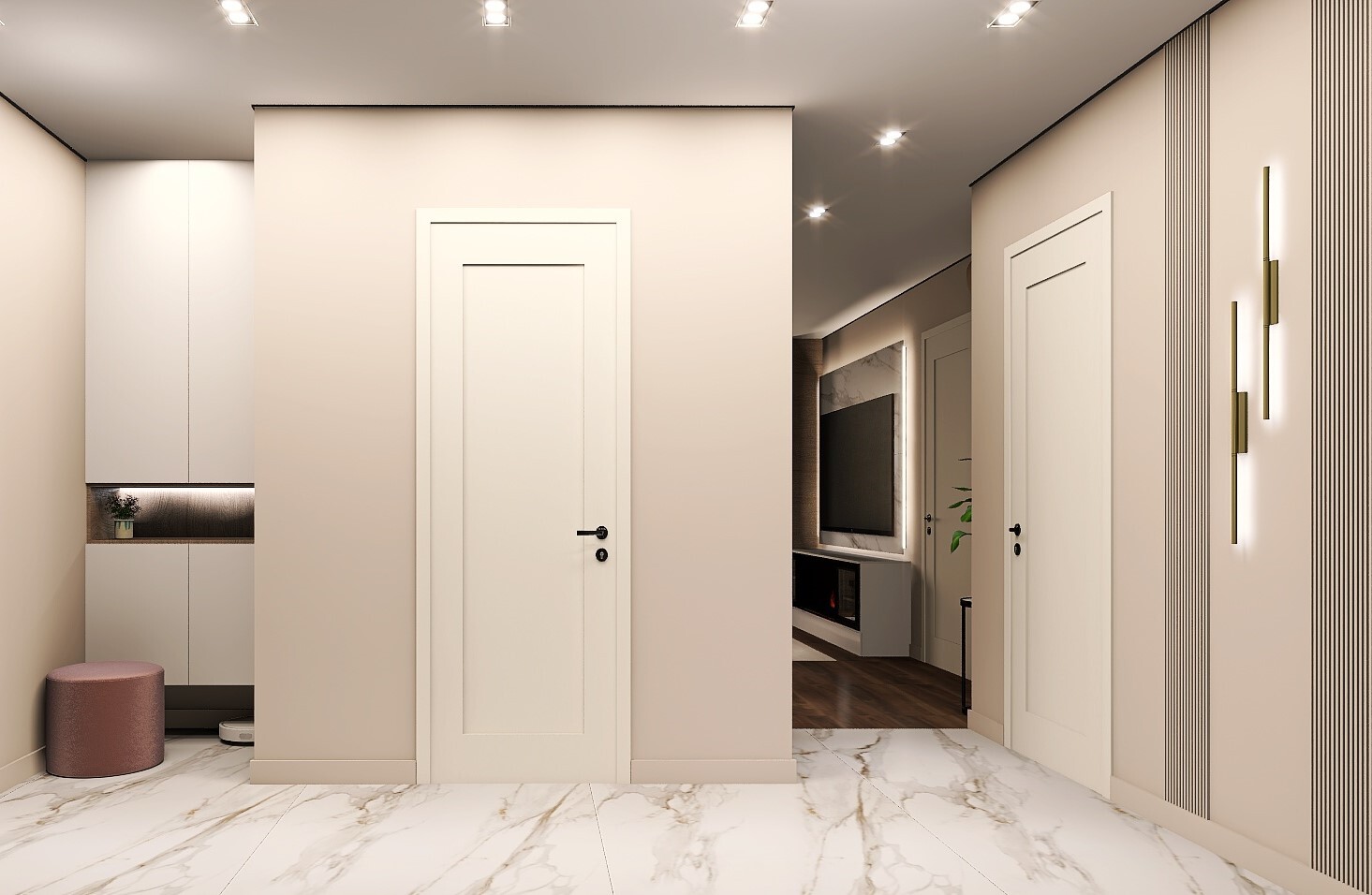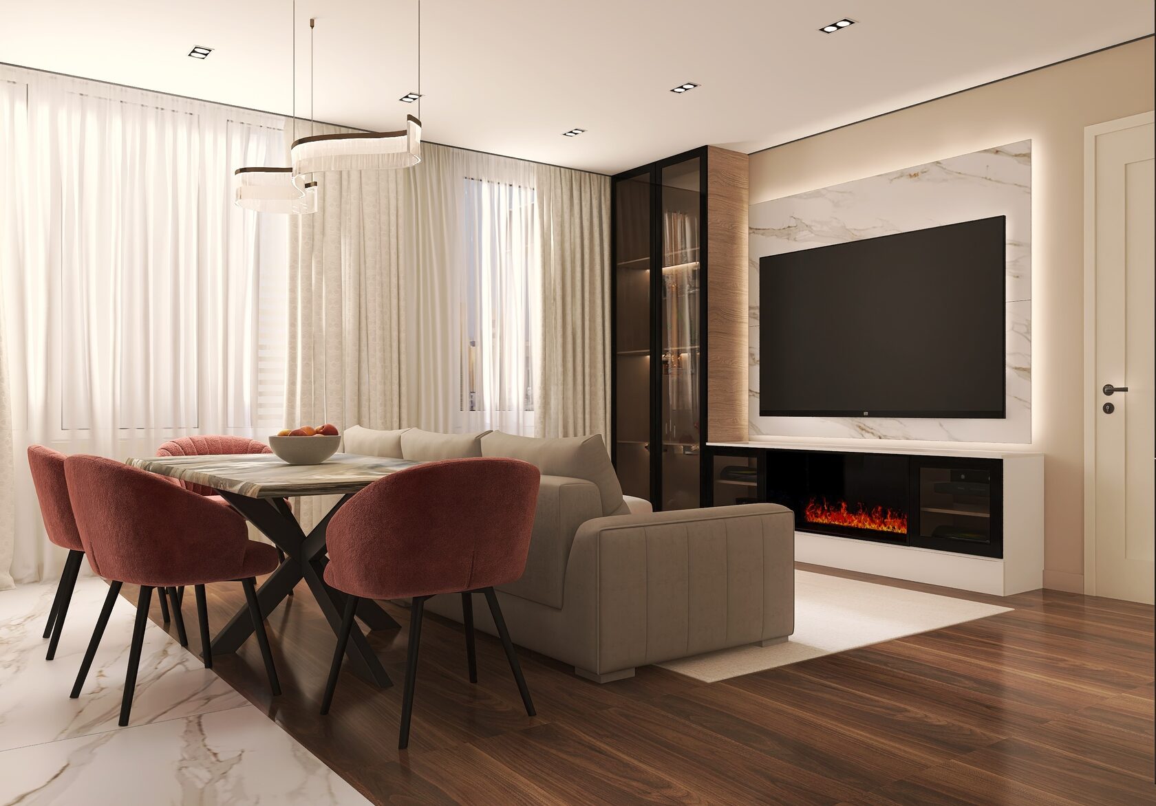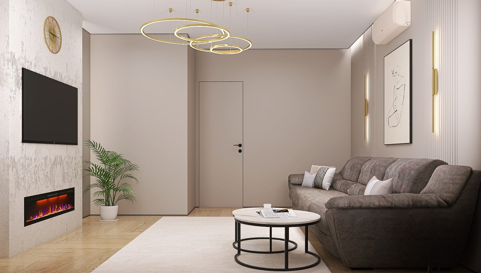 Заказчики мне сразу сказали, что нужно всё максимально строго, сдержанно, но элегантно. Холодные тона, но не с теплыми нотками. А еще приветствуется функциональность и практичность. И вот, что получилось на основе пожеланий. Проект уже реализован, новоселье отмечено.