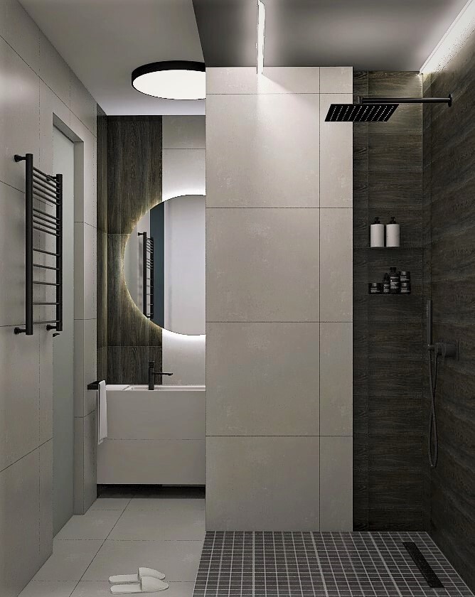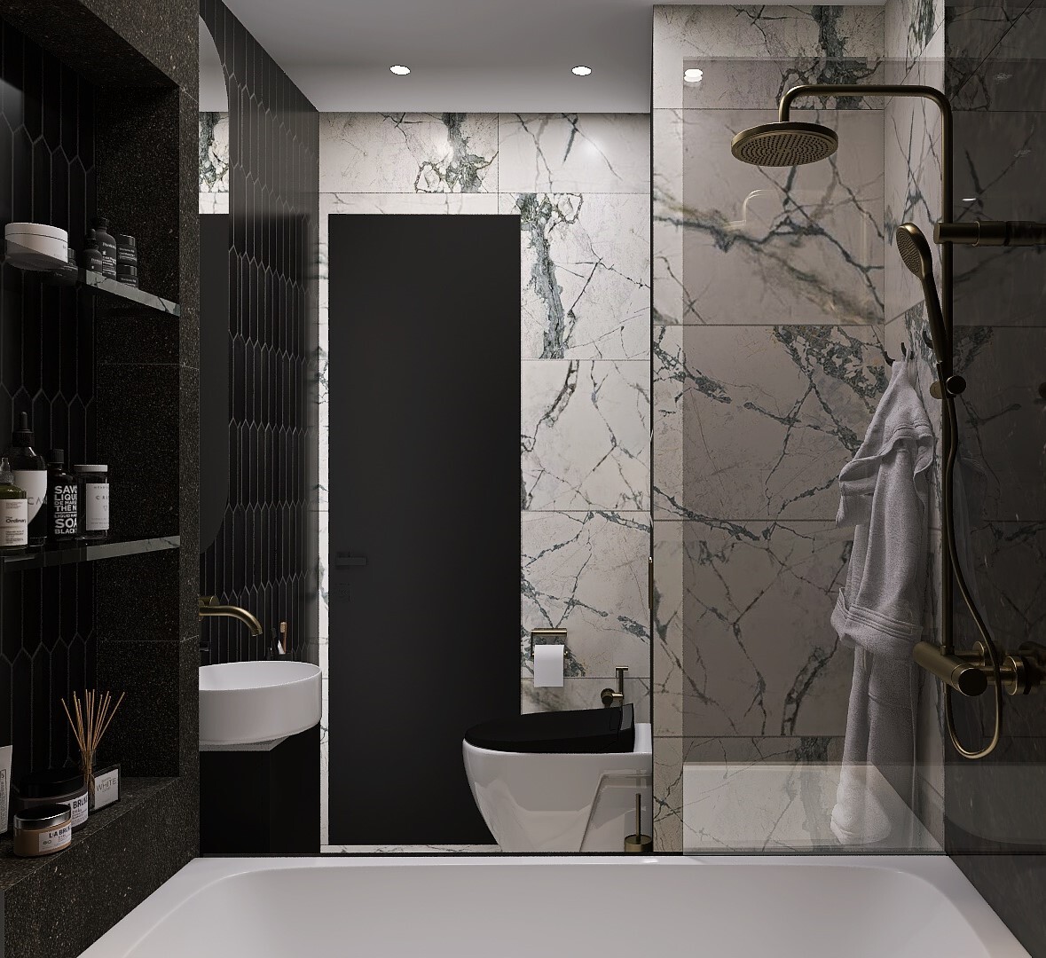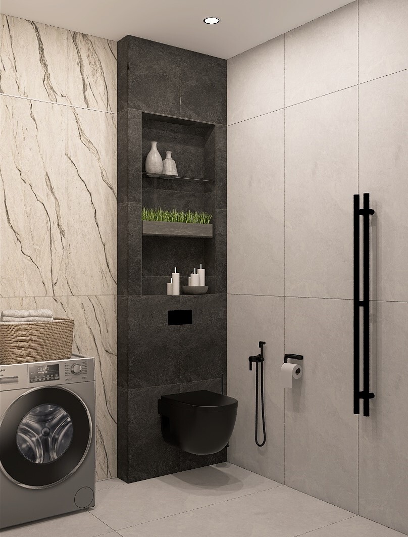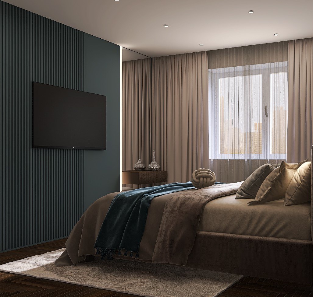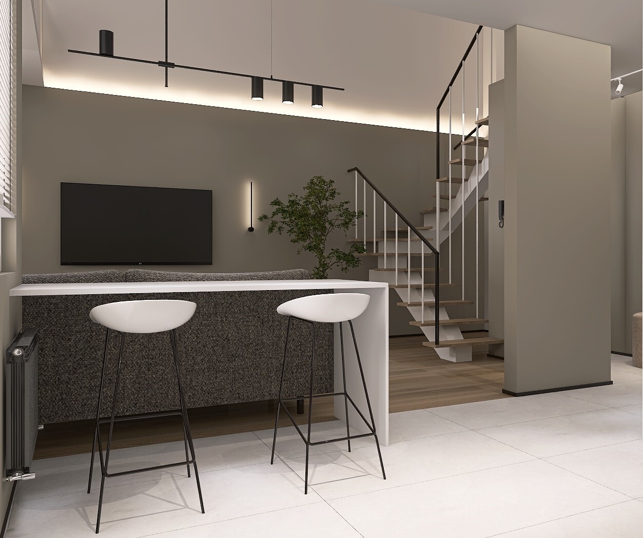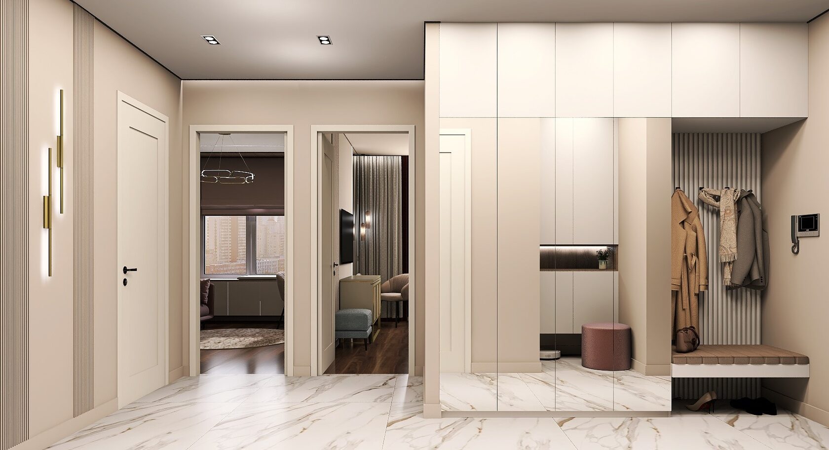 Заказчики мне сразу сказали, что нужно всё максимально строго, сдержанно, но элегантно. Холодные тона, но не с теплыми нотками. А еще приветствуется функциональность и практичность. И вот, что получилось на основе пожеланий. Проект уже реализован, новоселье отмечено.