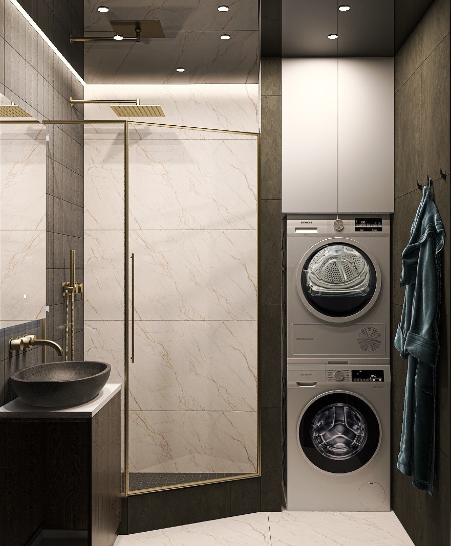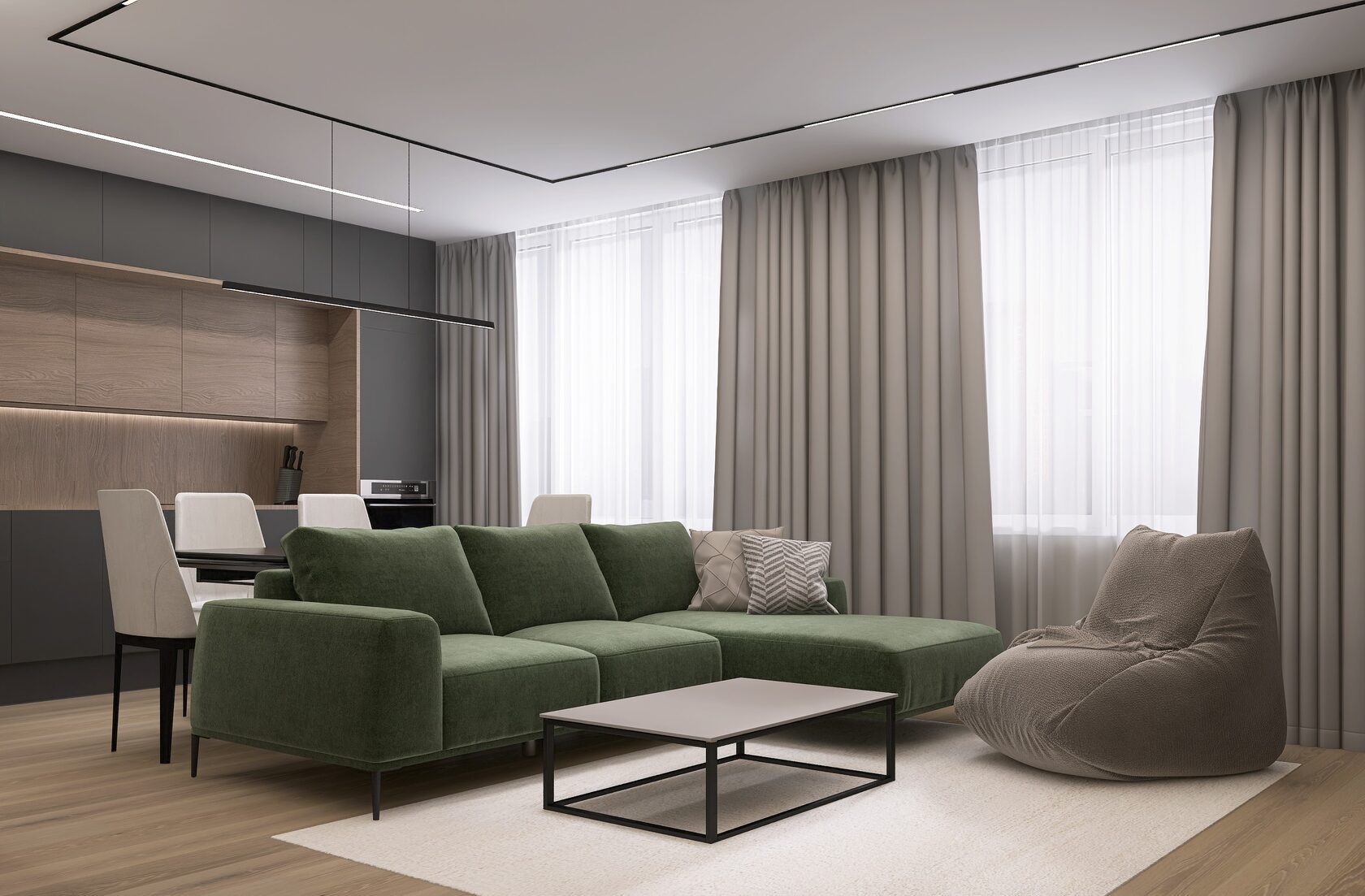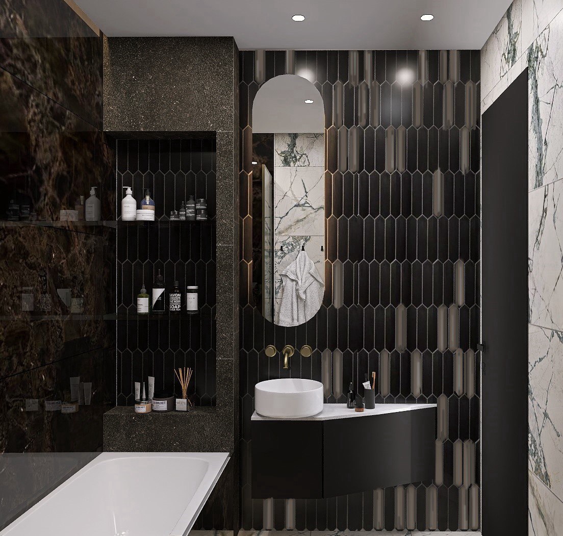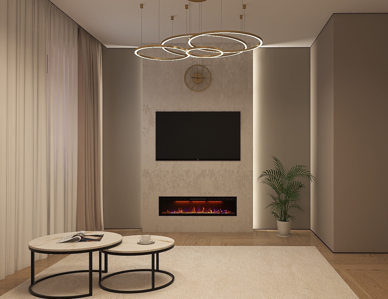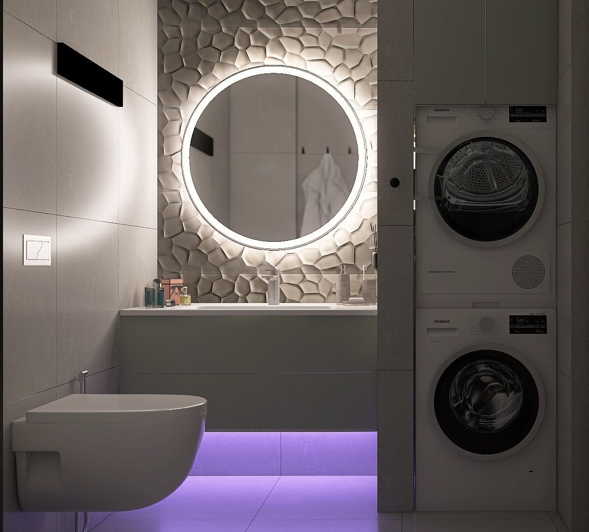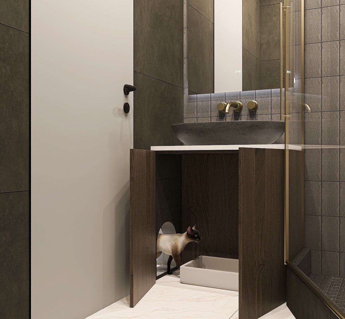Заказчики мне сразу сказали, что нужно всё максимально строго, сдержанно, но элегантно. Холодные тона, но не с теплыми нотками. А еще приветствуется функциональность и практичность. И вот, что получилось на основе пожеланий. Проект уже реализован, новоселье отмечено.