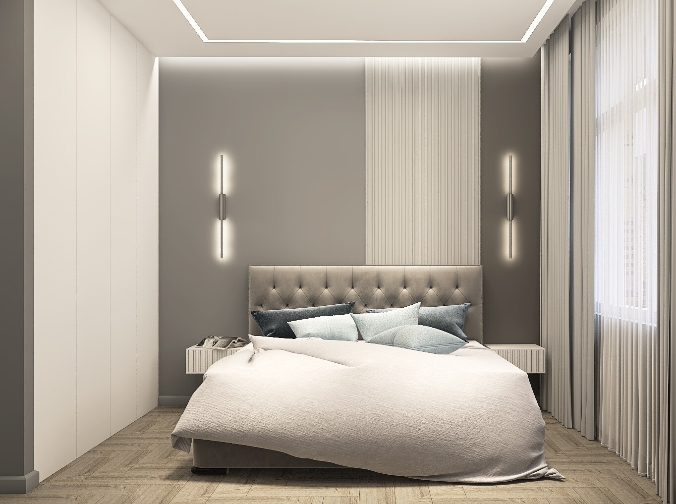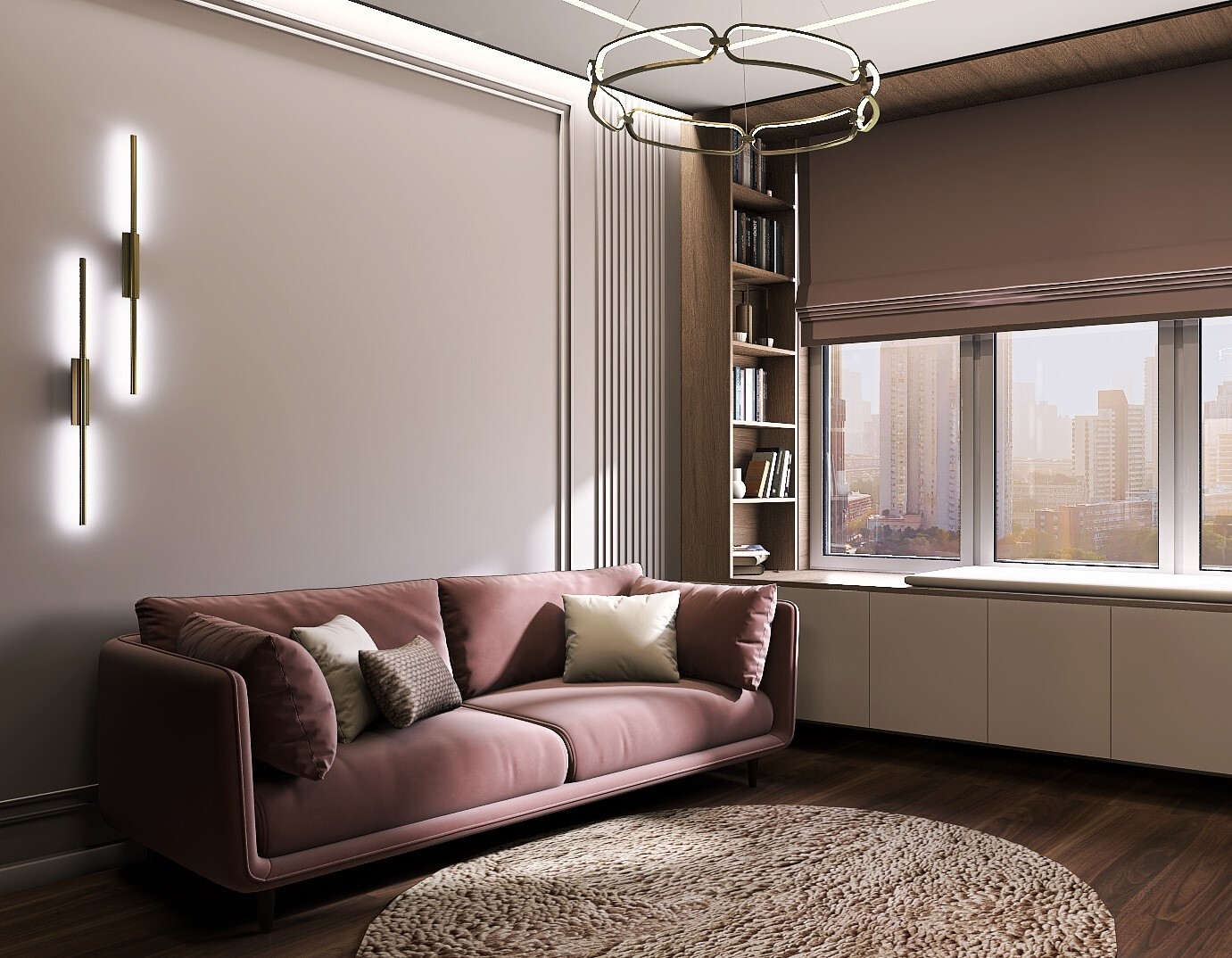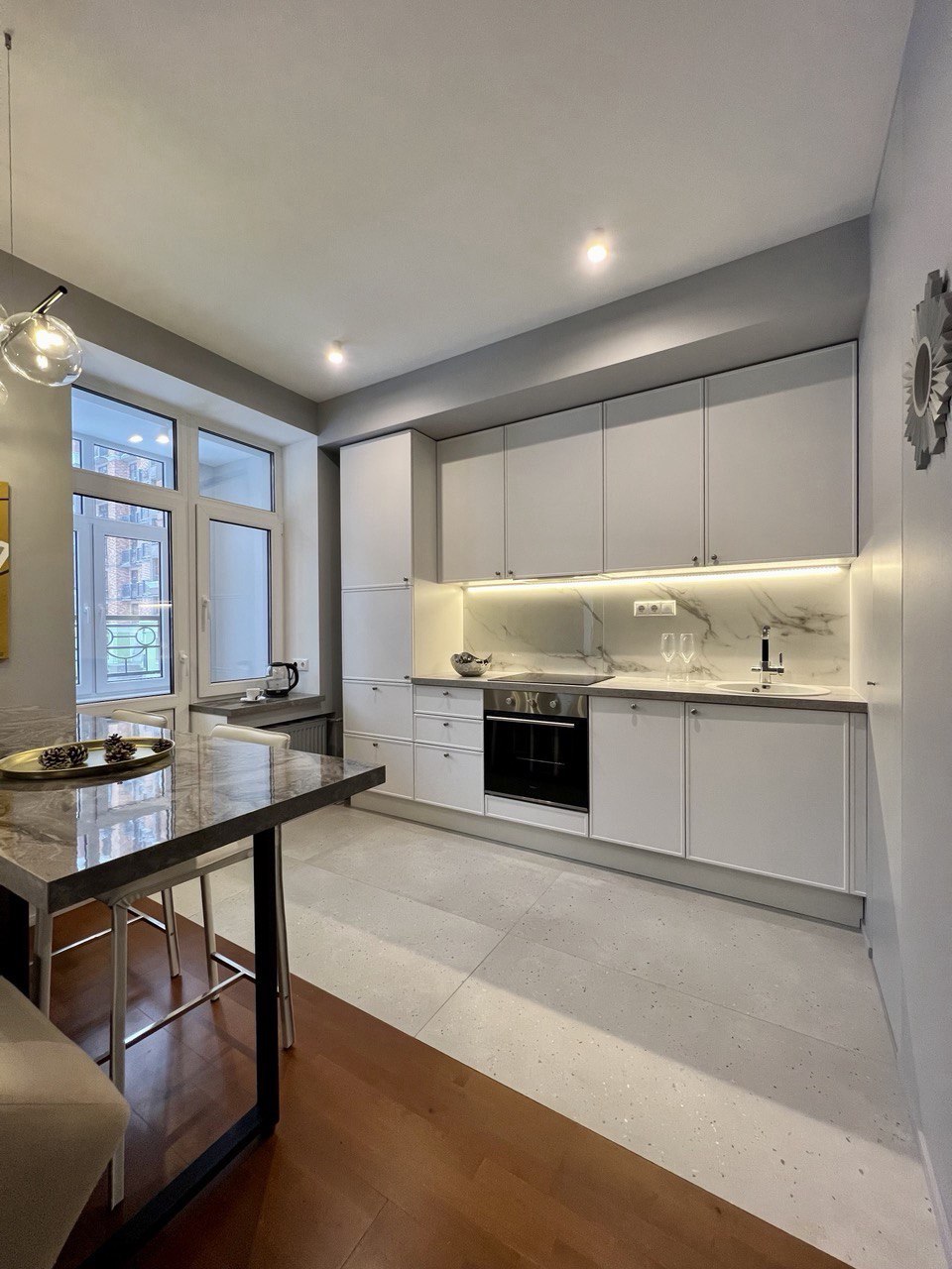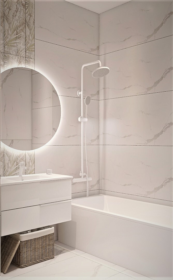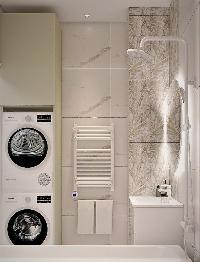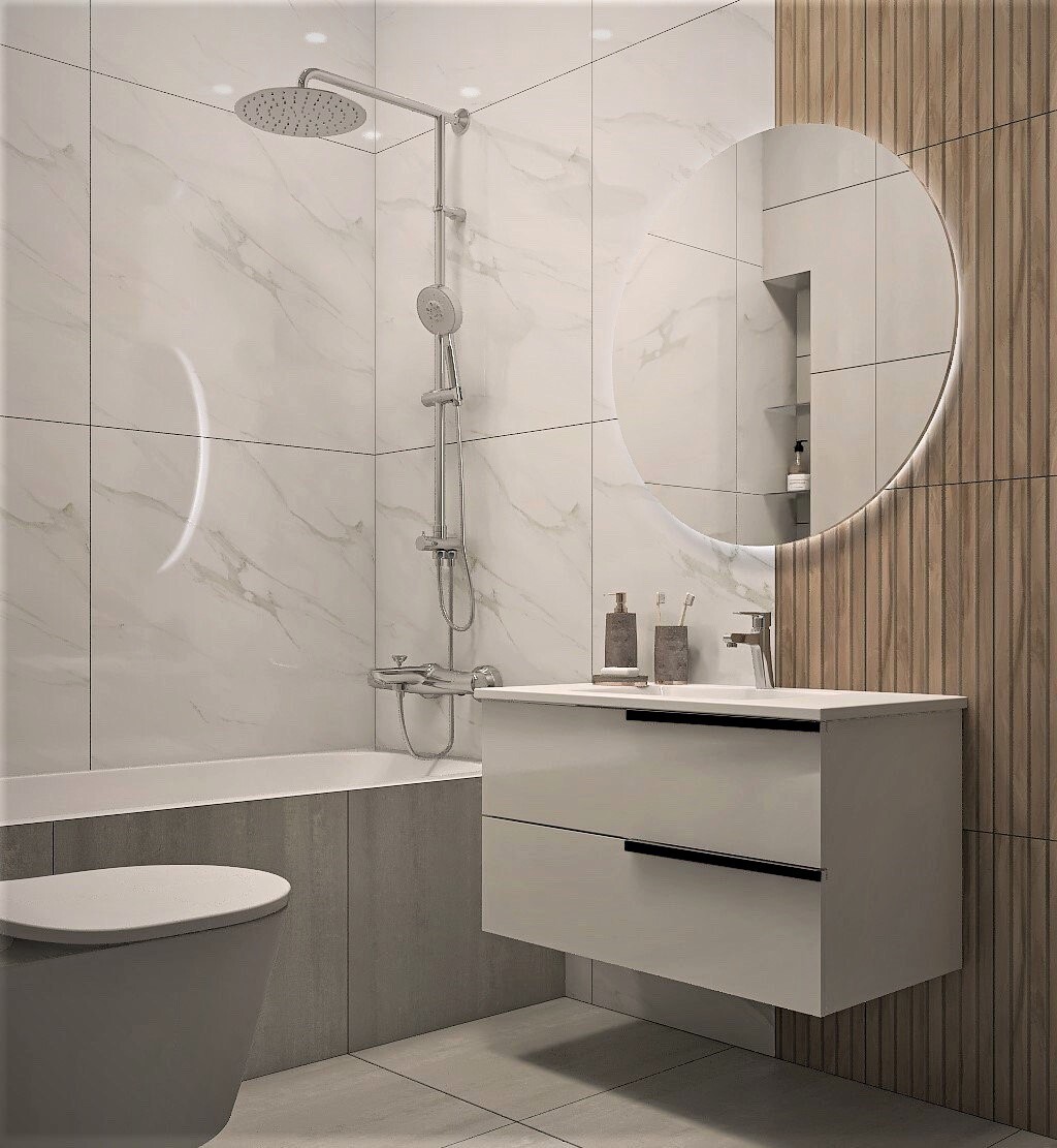 Заказчики мне сразу сказали, что нужно всё максимально строго, сдержанно, но элегантно. Холодные тона, но не с теплыми нотками. А еще приветствуется функциональность и практичность. И вот, что получилось на основе пожеланий. Проект уже реализован, новоселье отмечено.
