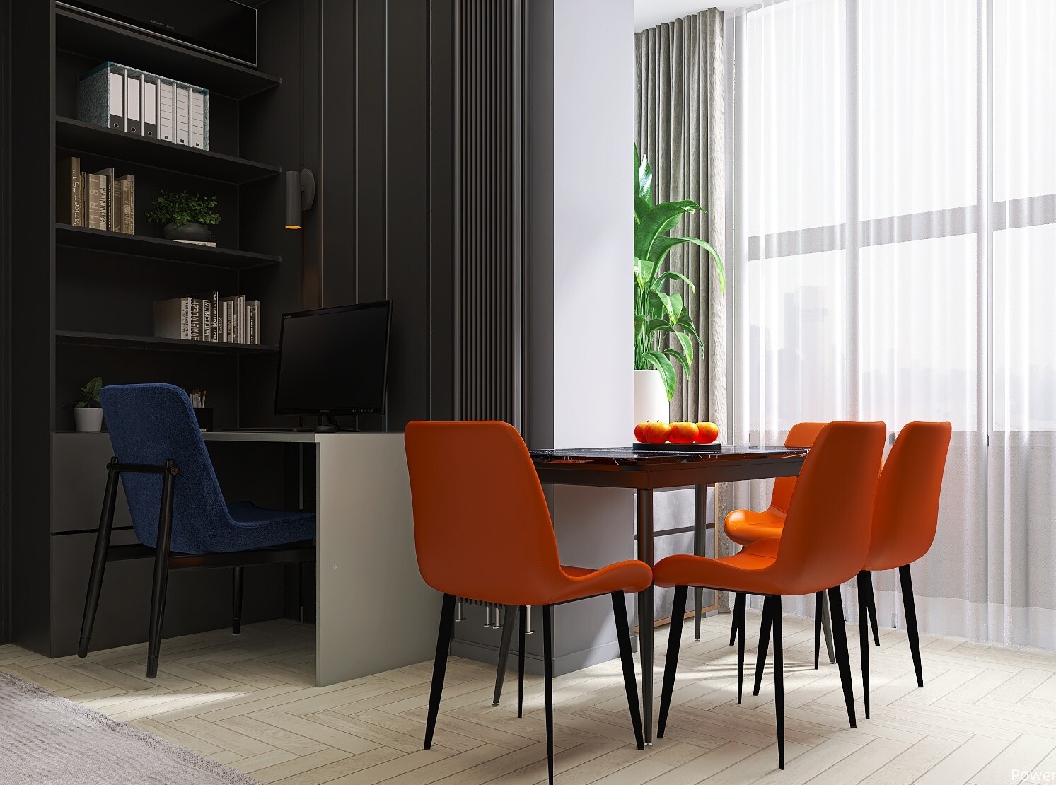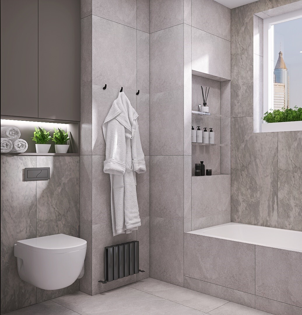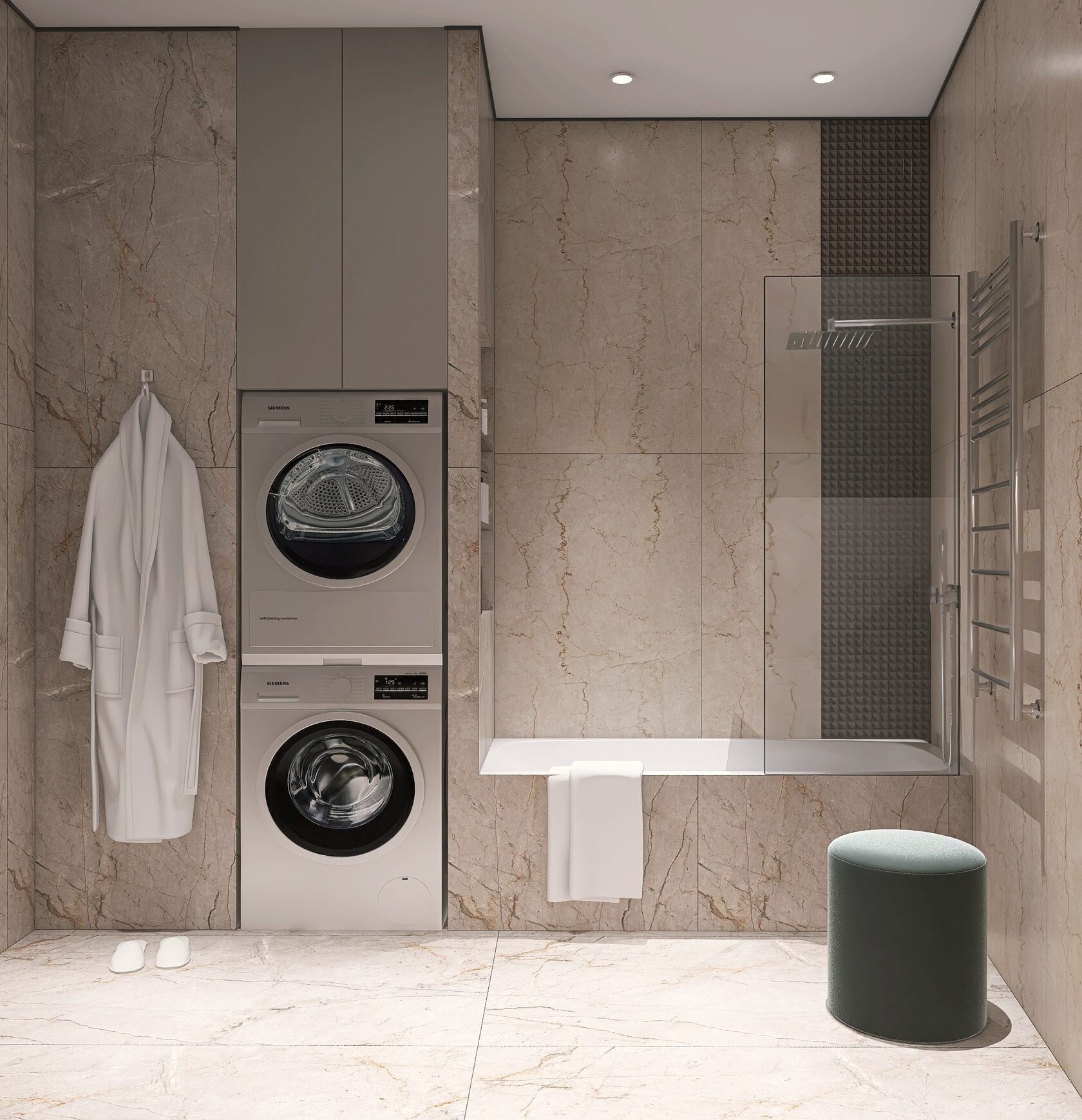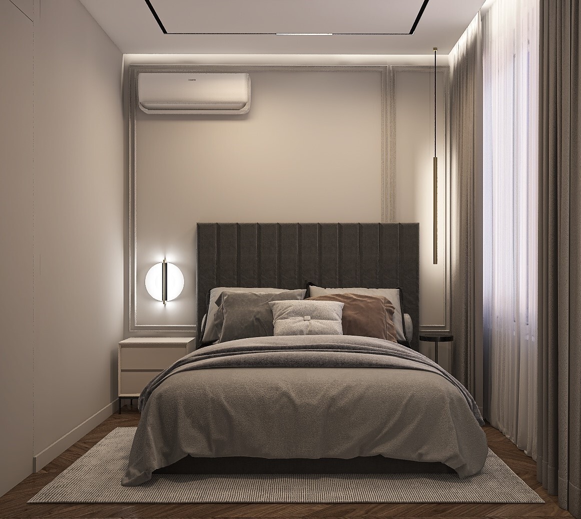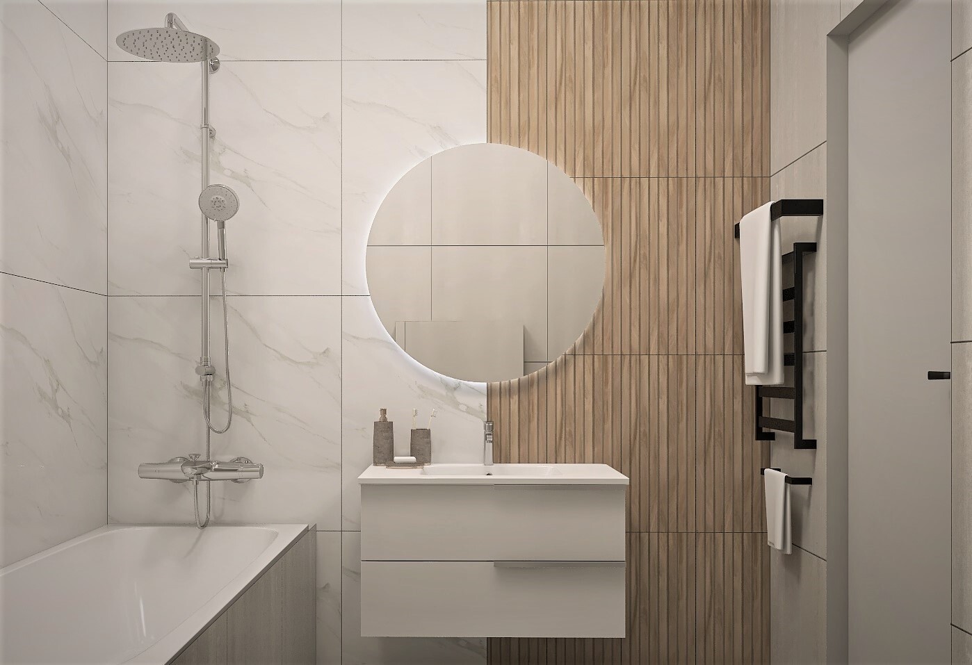 Заказчики мне сразу сказали, что нужно всё максимально строго, сдержанно, но элегантно. Холодные тона, но не с теплыми нотками. А еще приветствуется функциональность и практичность. И вот, что получилось на основе пожеланий. Проект уже реализован, новоселье отмечено.