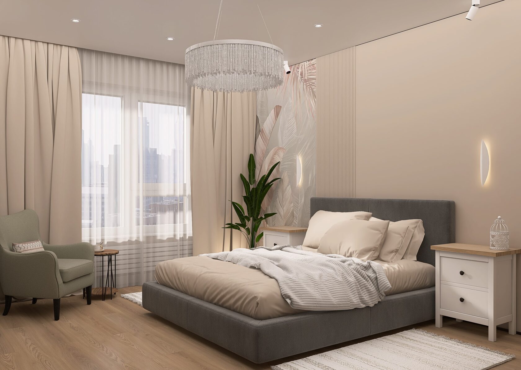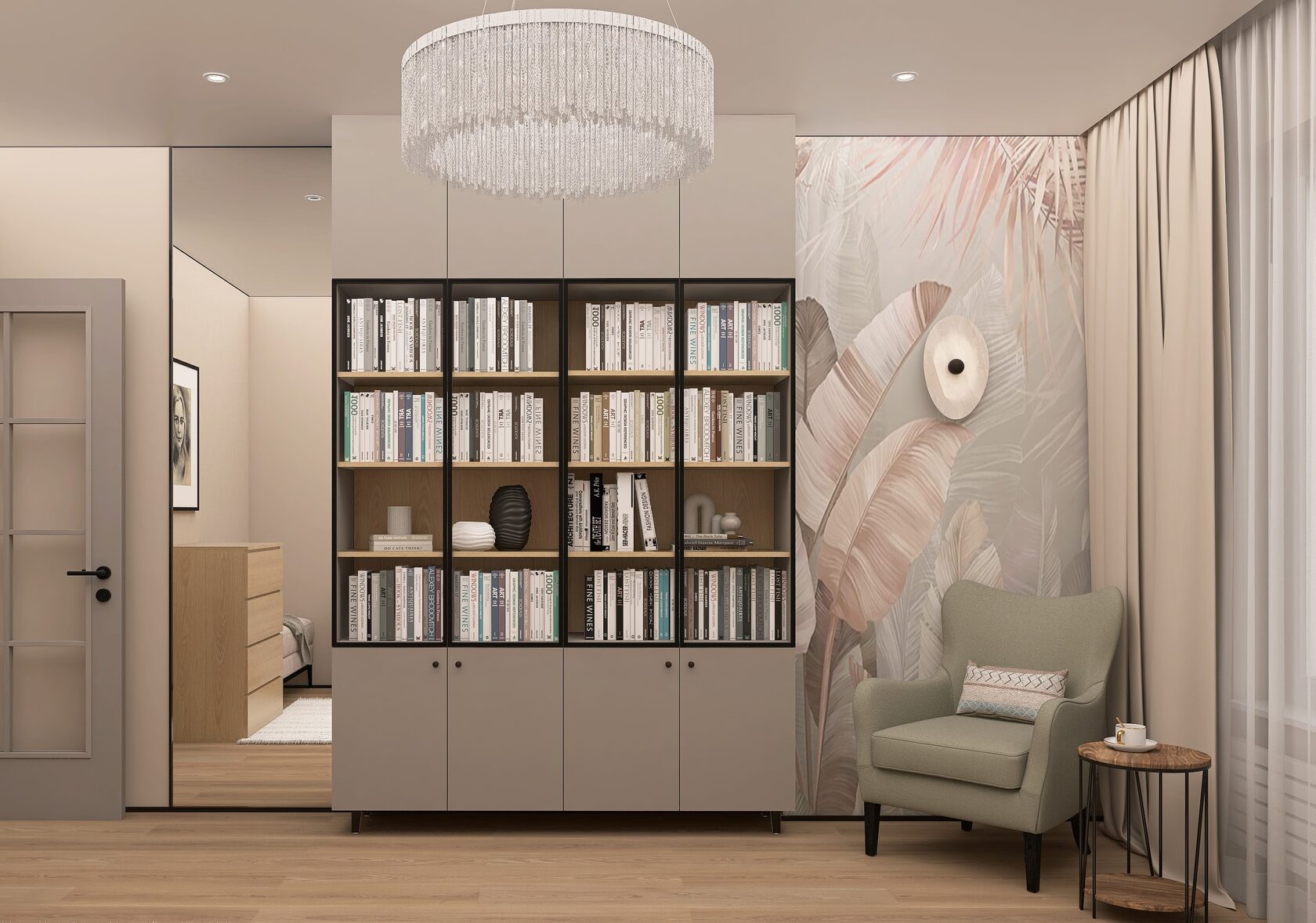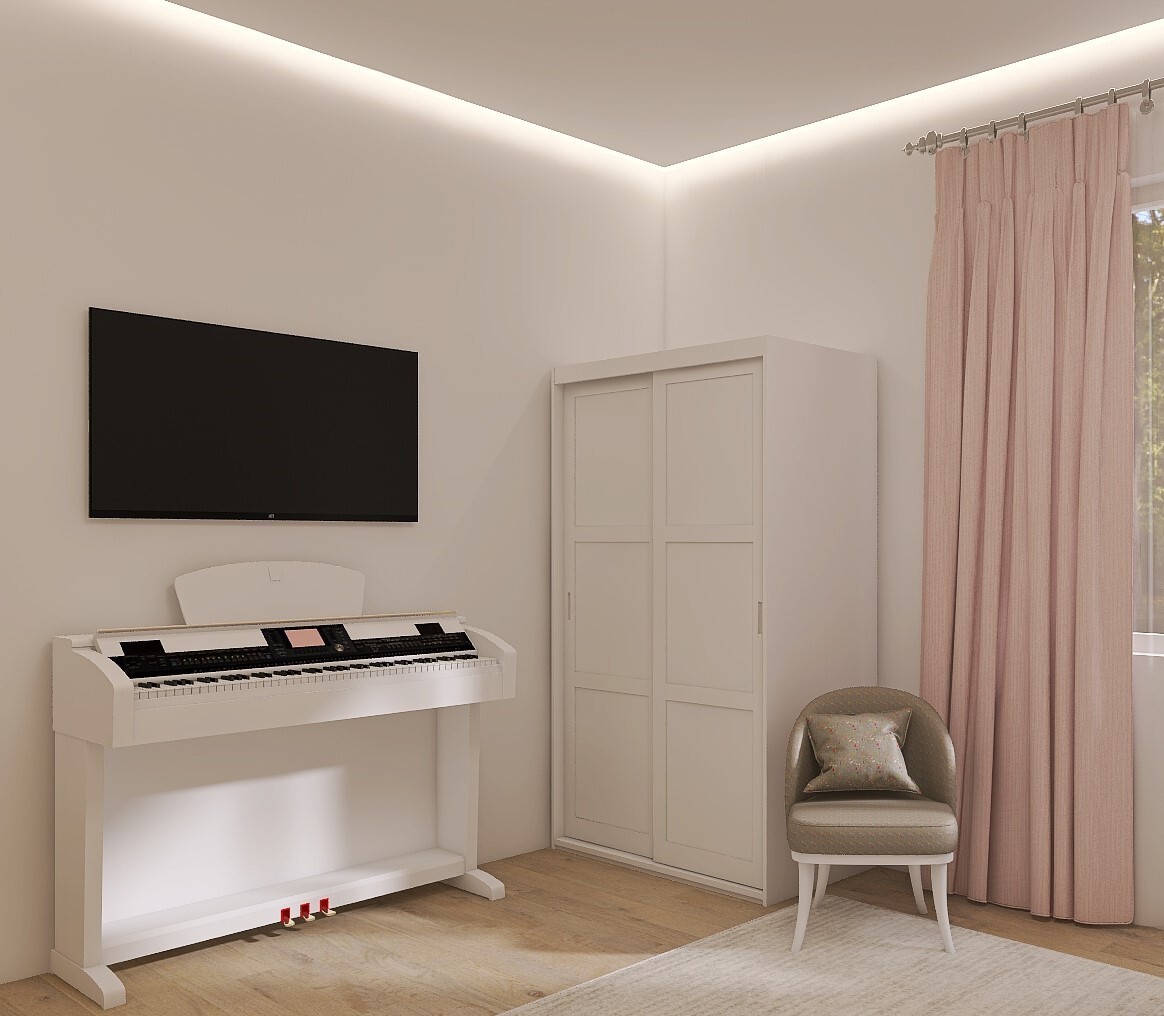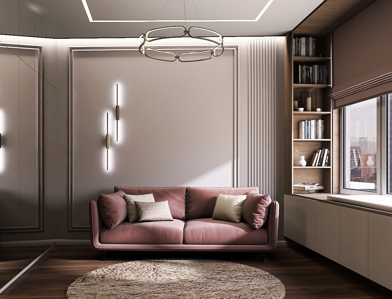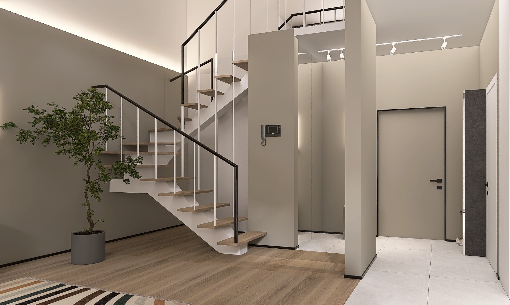 Заказчики мне сразу сказали, что нужно всё максимально строго, сдержанно, но элегантно. Холодные тона, но не с теплыми нотками. А еще приветствуется функциональность и практичность. И вот, что получилось на основе пожеланий. Проект уже реализован, новоселье отмечено.