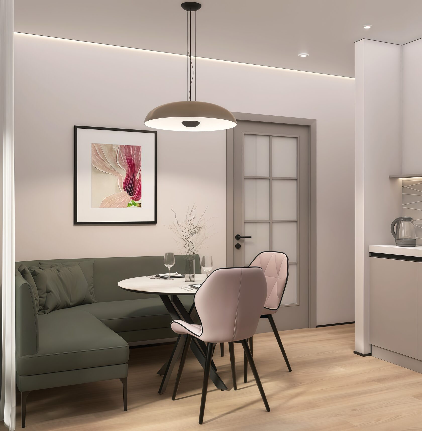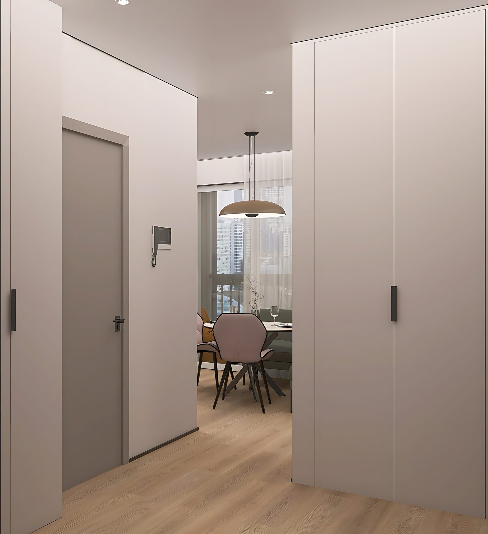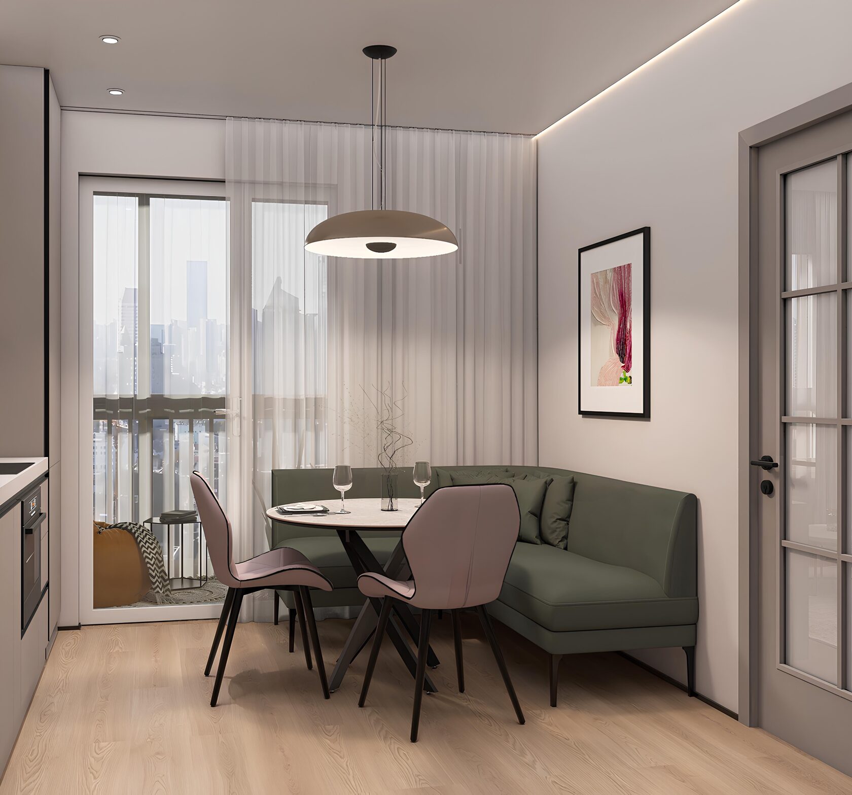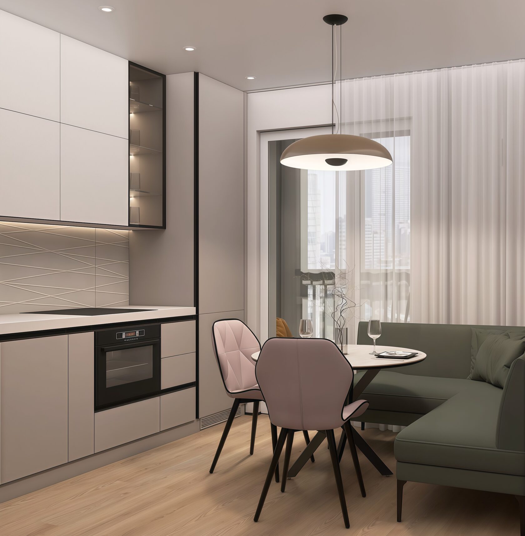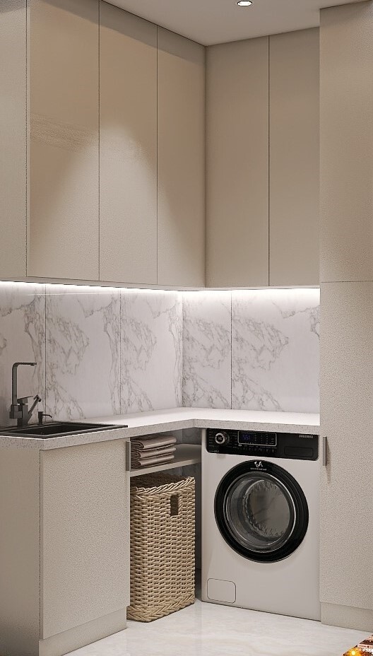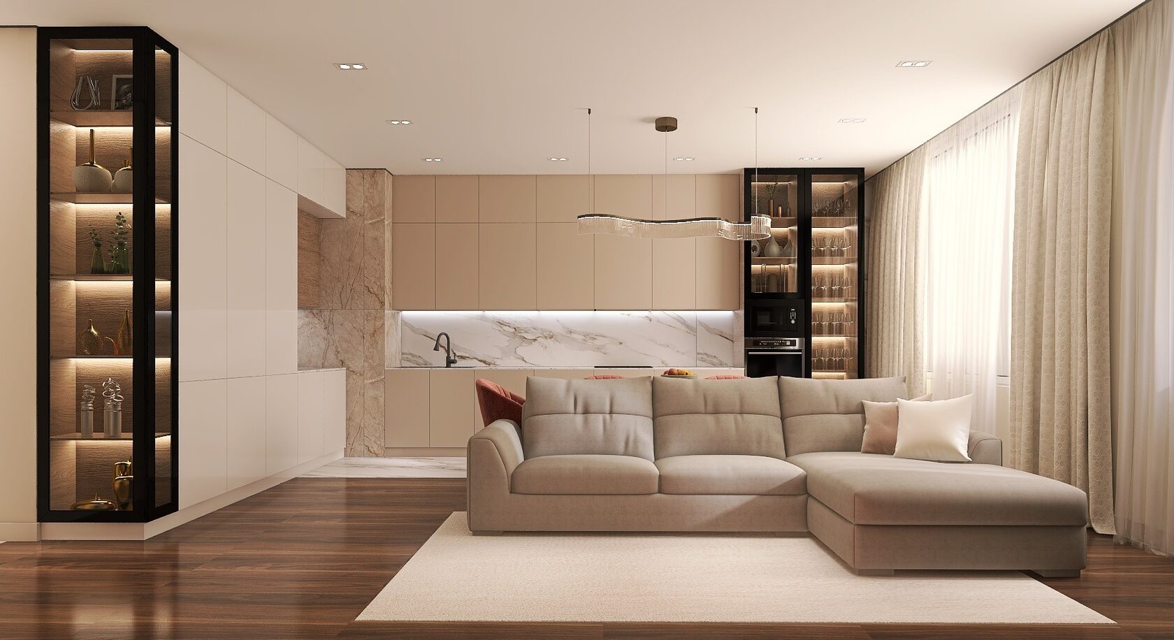 Заказчики мне сразу сказали, что нужно всё максимально строго, сдержанно, но элегантно. Холодные тона, но не с теплыми нотками. А еще приветствуется функциональность и практичность. И вот, что получилось на основе пожеланий. Проект уже реализован, новоселье отмечено.
