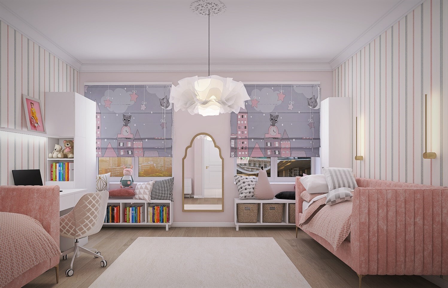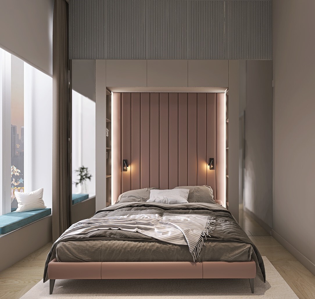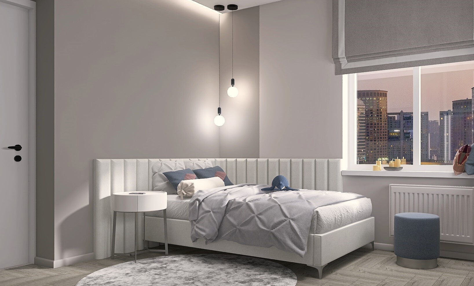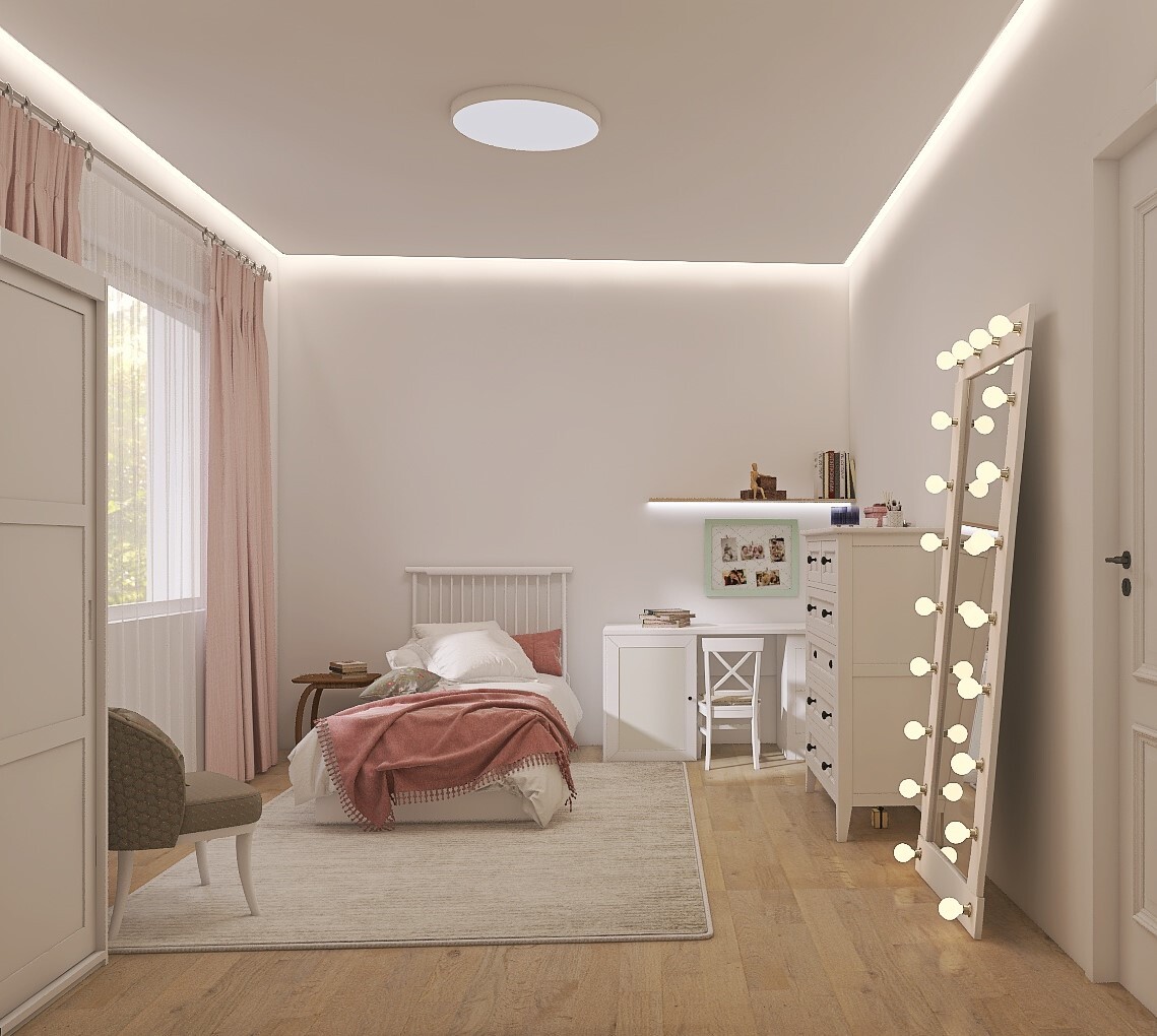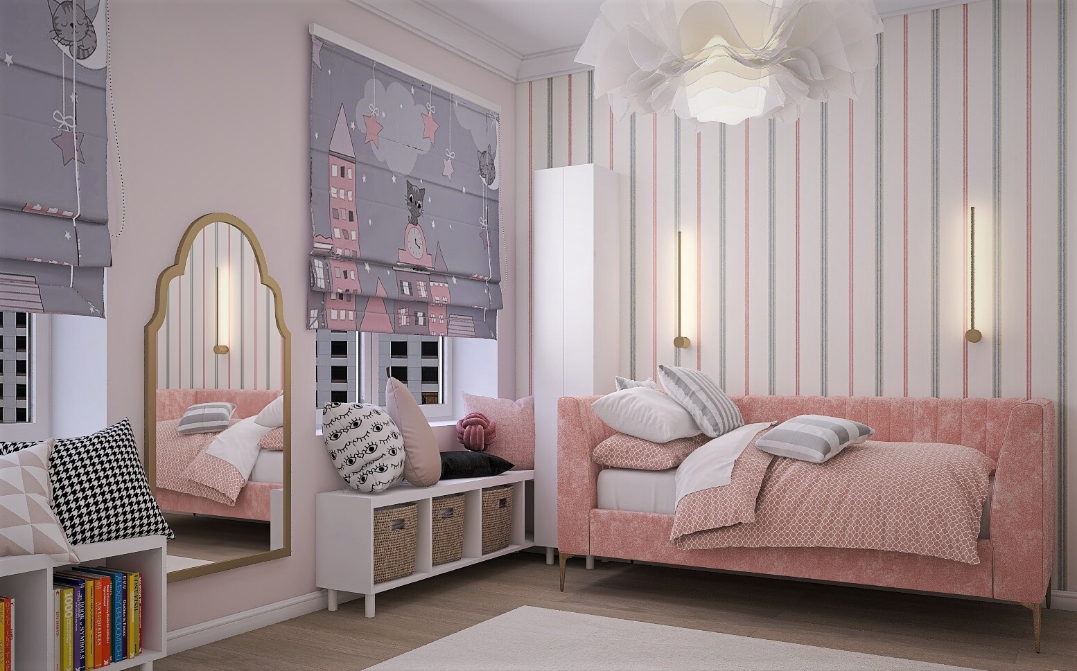 Высокие потолки 3.7 м запустили фантазию и заказчики пришли ко мне с главным пожеланием - сделать второй этаж. Но пришлось их переубедить, ведь для двух этажей надо не менее 4.5 м. Поэтому в квартире получилась только антресольная полка для папы - чтобы, не мешая никому, играть в компьютерные игры. В маленькой спальне поставили кровать-трансформер, а сыну придумали интерактивную двухярусную кровать.