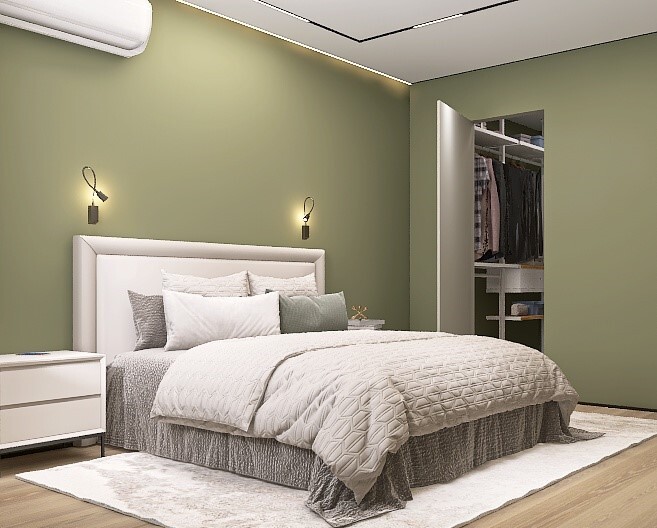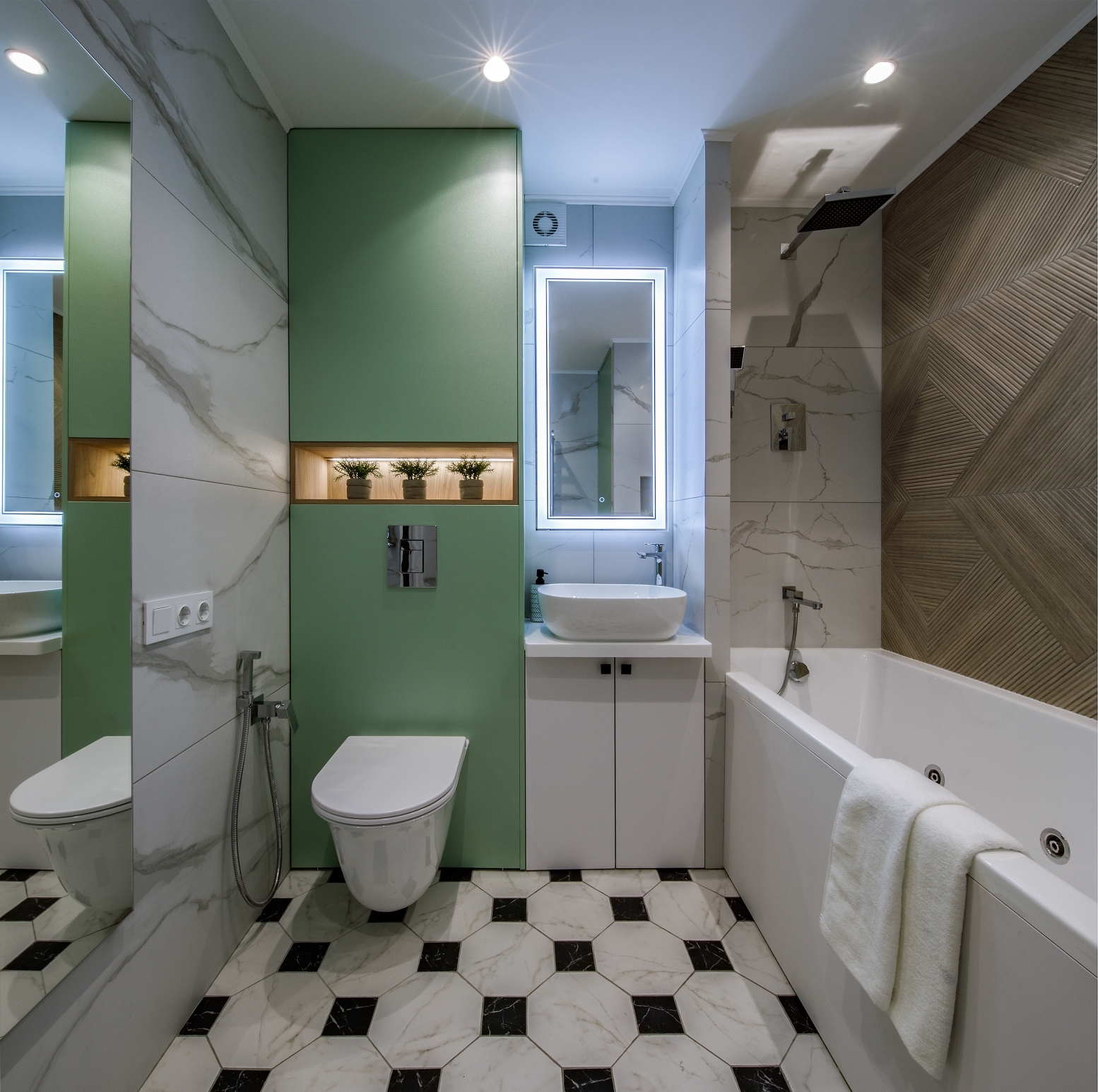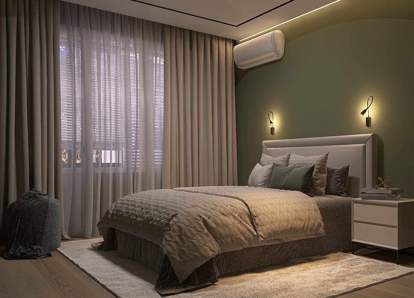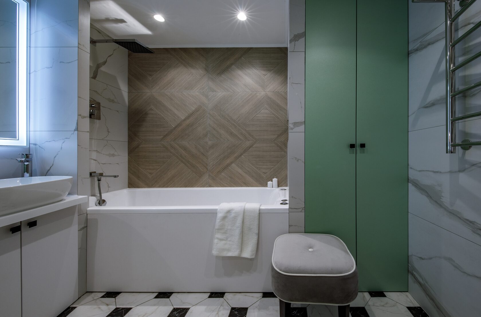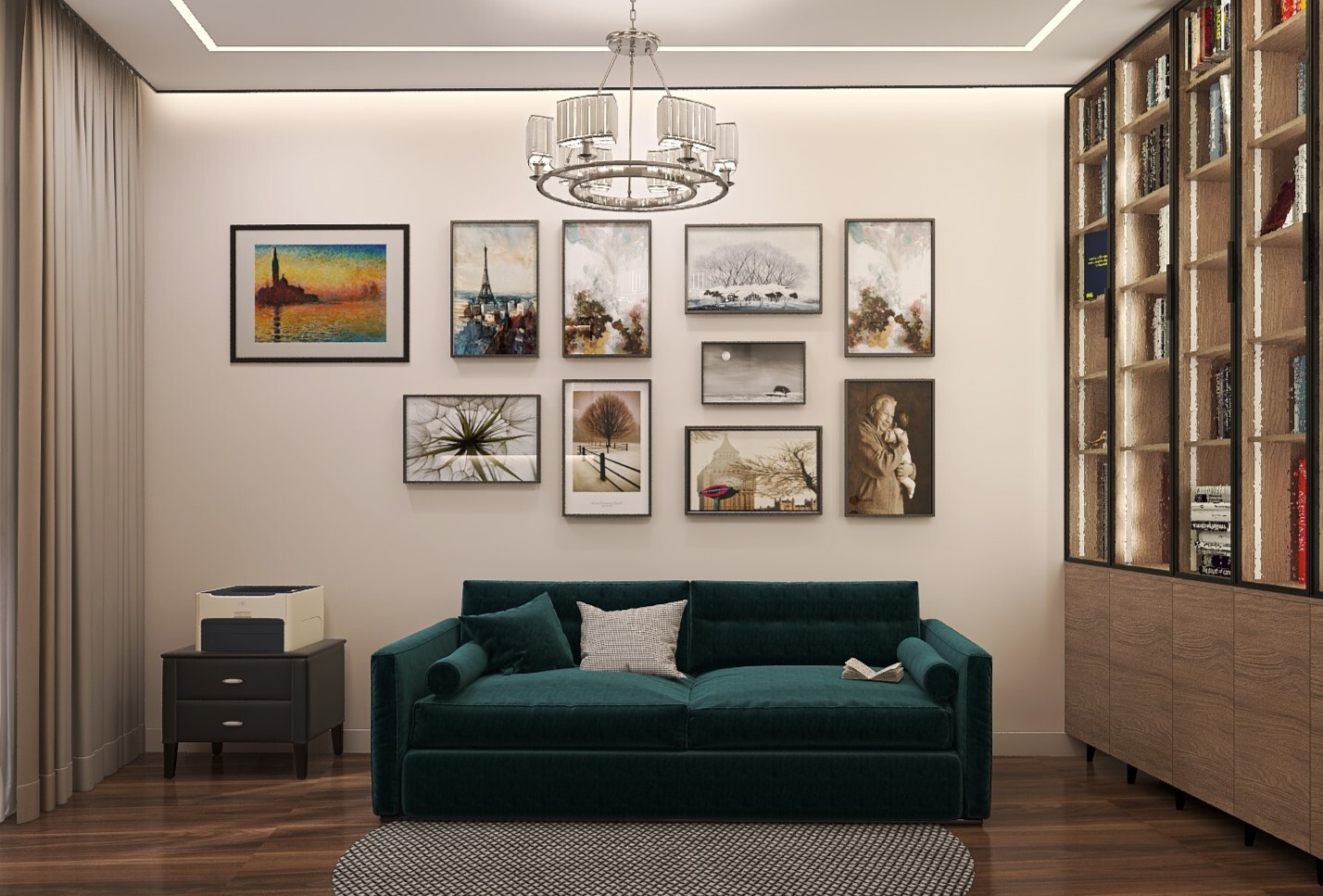 Максимальная функциональность и продуманность пространства. Здесь нашлось место для верстака, рабочего кабинета, 3д-принтера и многочисленных спортивных приспособлений. В большом санузле 8 м2 есть место для мини-душевой, чтобы ухаживать за мотоциклетным обмундированием. Светильник-молнию в гостиной Заказчик решил смастерить сам. Мне оставалось лишь свести воедино пожелания, раскрасить все любимым зеленым цветом и запрограммировать многочисленные инженерные решения для вентиляции, звукоизоляции, умного дома. Проект завершается Ждем результат.