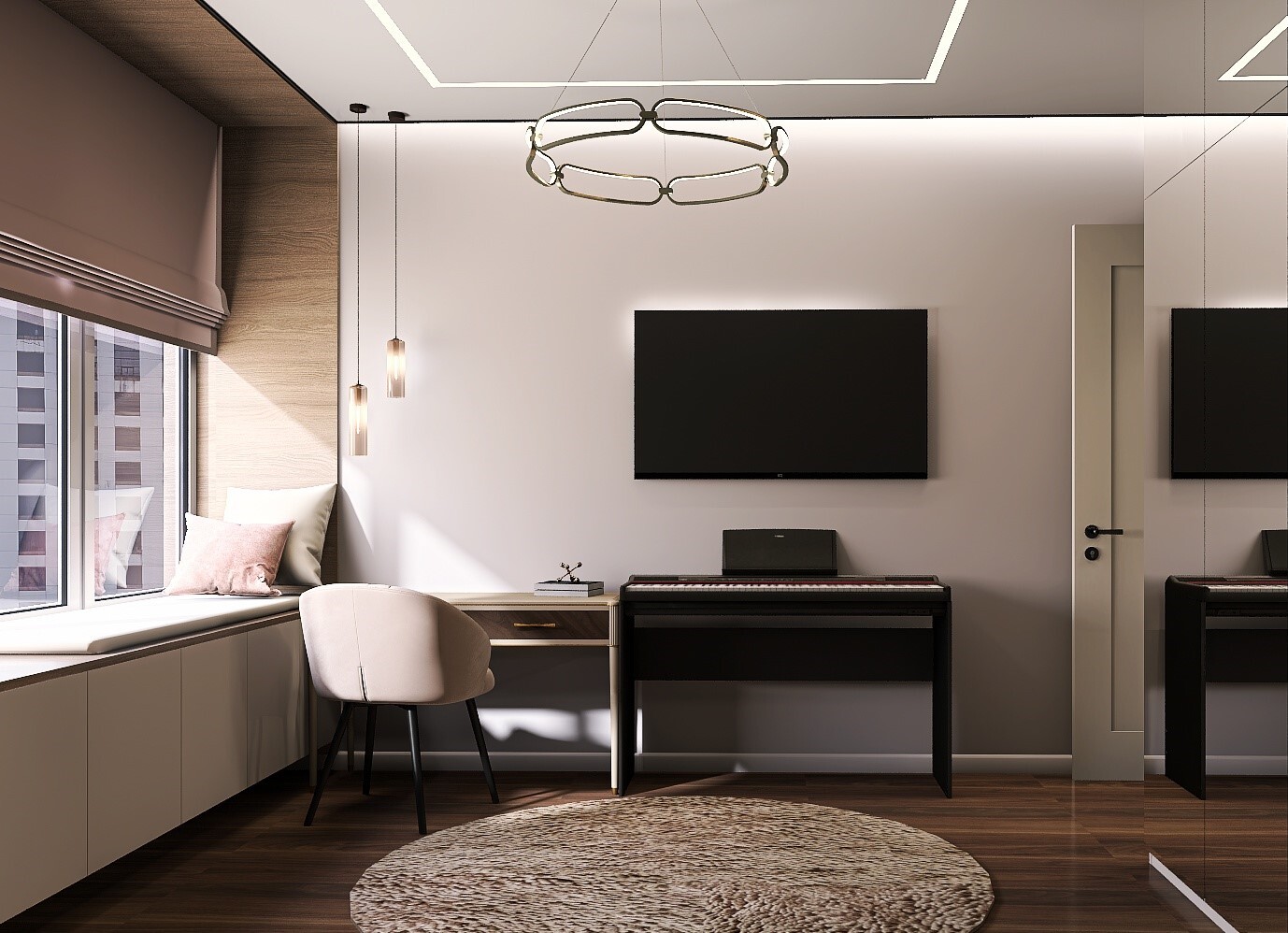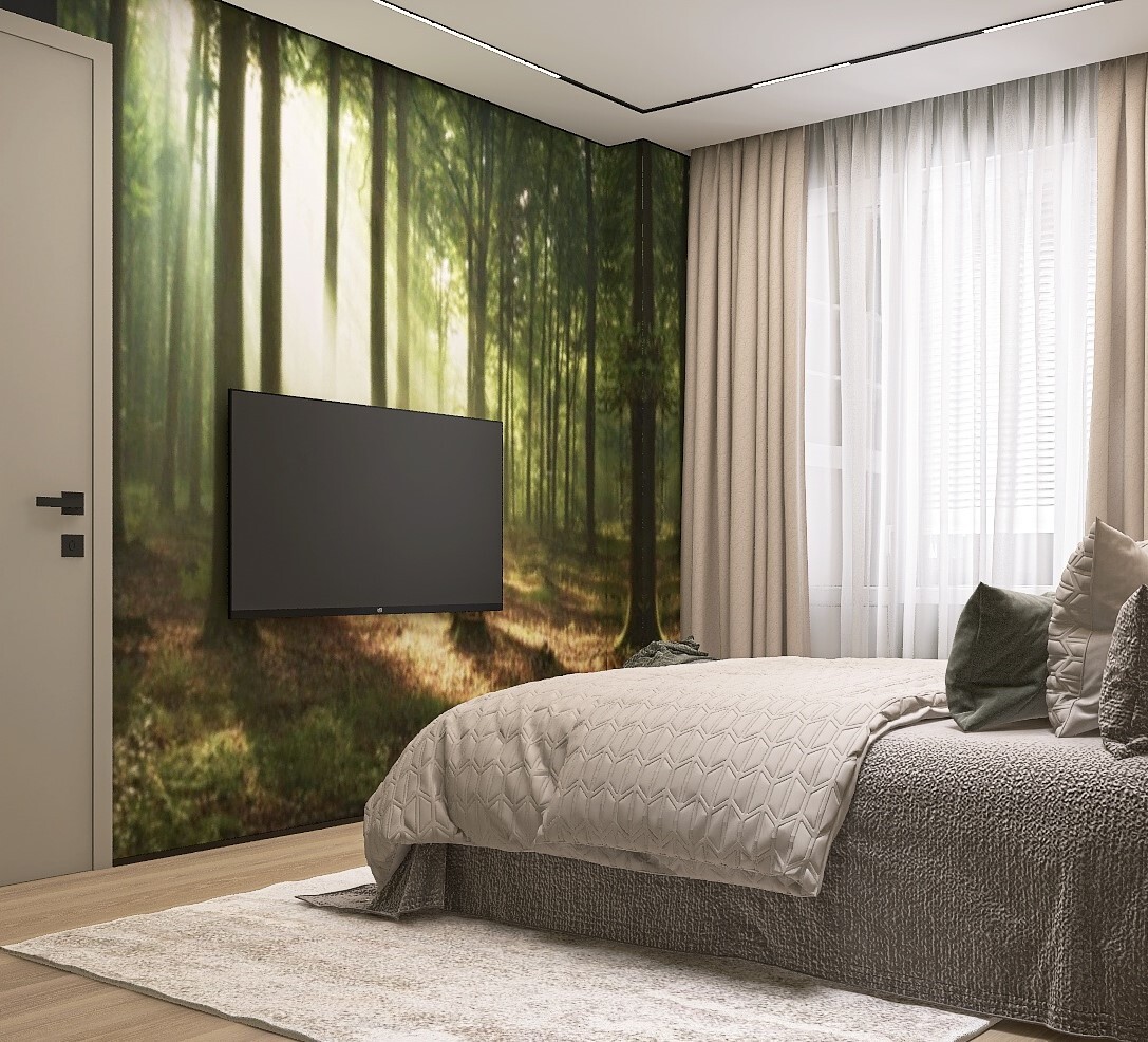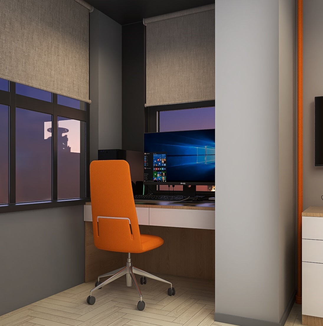 Заказчики сразу расположили к себе своим юмором и теплотой общения. Работа была в радость и проект получился необычным и харизматичным. Главным акцентом интерьера стал Бог войны Кратос из компьютерной игры - занял главную стену в гостиной. Юноши тоже рассказали, что хотят - и получили уютную комнату с удобными рабочими местами. Маме "разрешили" сделать спальню под ее вкус. В общем, все счастливы! И я тоже)