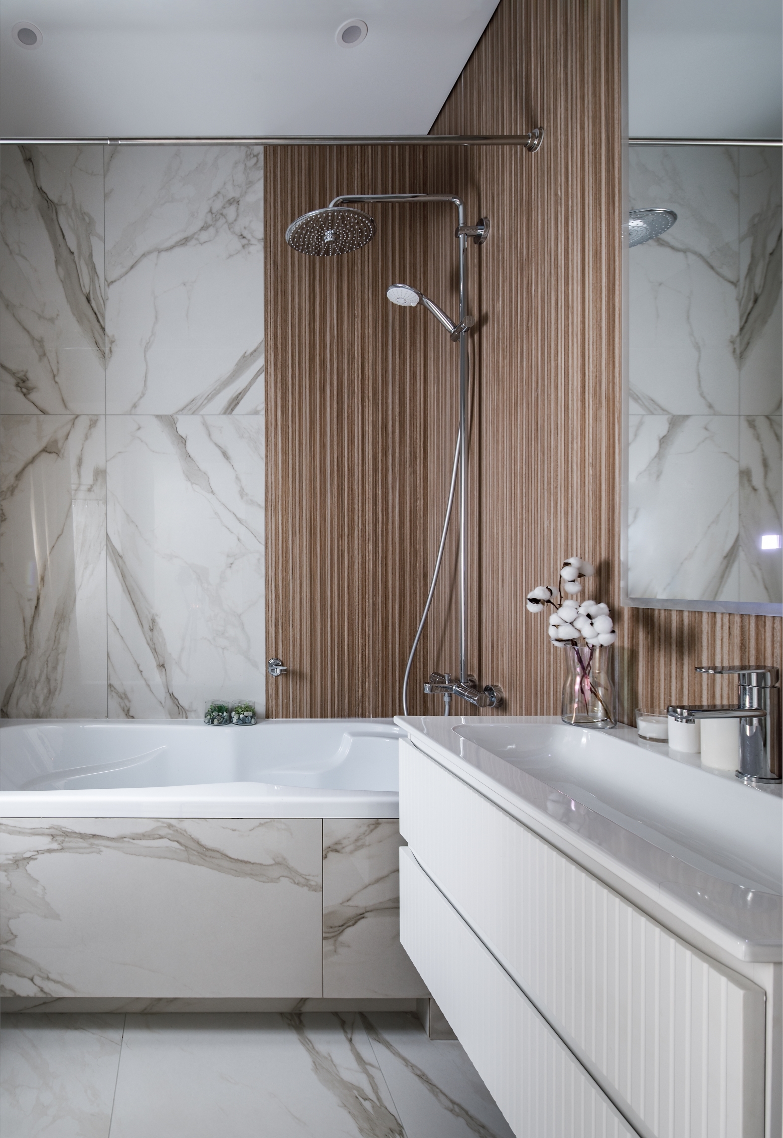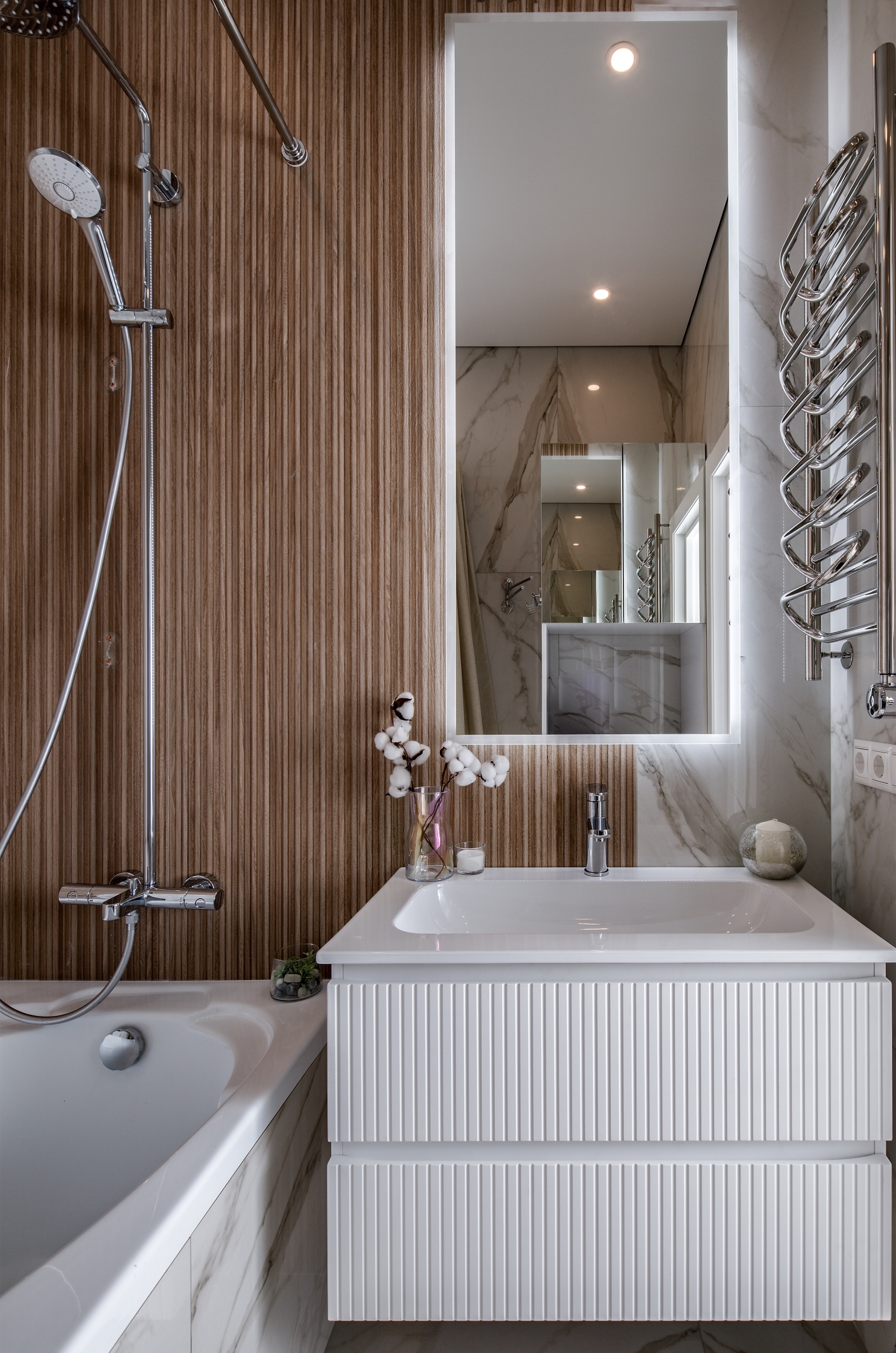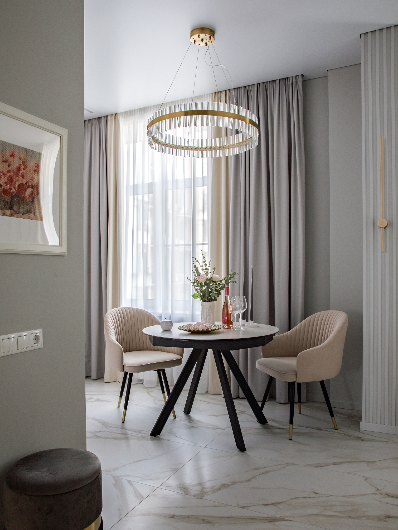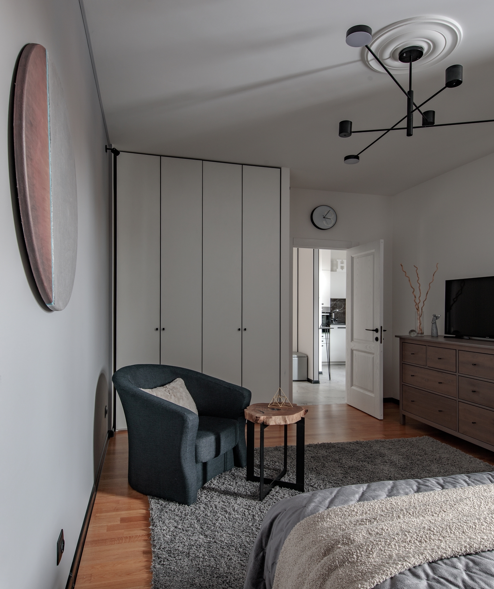 В проект я вошла на стадии отделки. Оказалось, что проект, разработанный строительной компанией, включал только технические моменты. Ремонт пришлось приостановить на пару недель, чтобы переработать проект, внести коррективы, подлбрать отделку и мебель. Результат на фото Сергея Моргунова.
