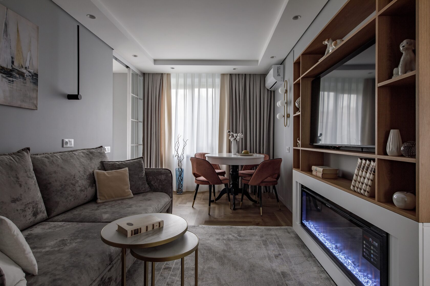 Они долго искали себе квартиру по душе, постоянно покупали готовую с ремонтом, но ни одна из них не удовлетворяла полностью их потребности. И наконец решились! Купили новую квартиру и сделали ее под себя! Задача была непростой. Поскольку Евгения и Николай прошли много вариантов и точно понимали, то хотят получить в результате. Скурпулезная работа надо каждым миллиметром - превратилась в проект их мечты. Интерьер одновременно получился нежным и брутальным - такие качество присущи этой харизматичной паре.