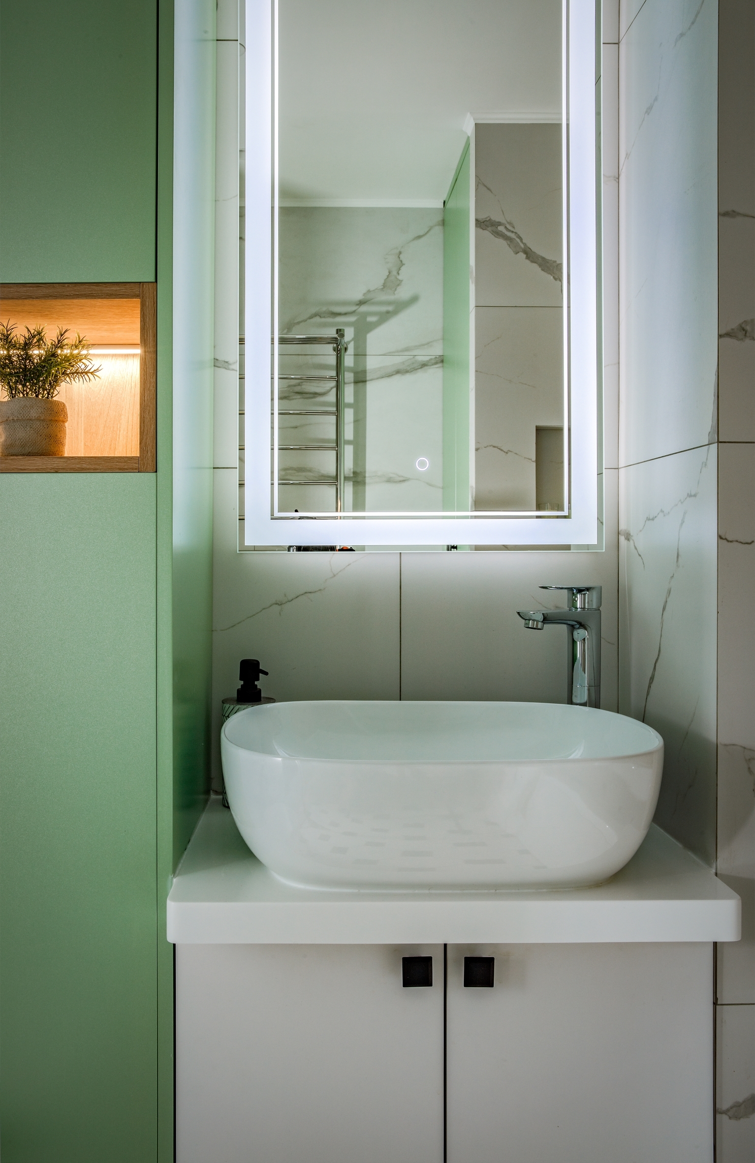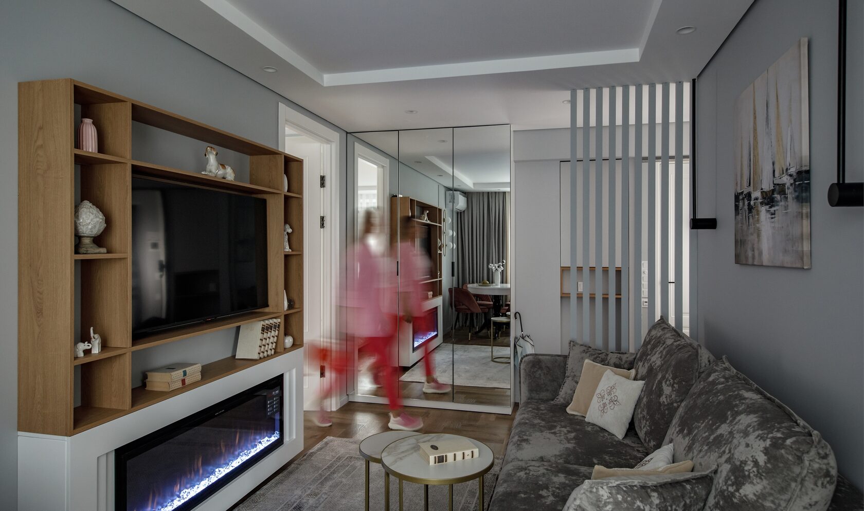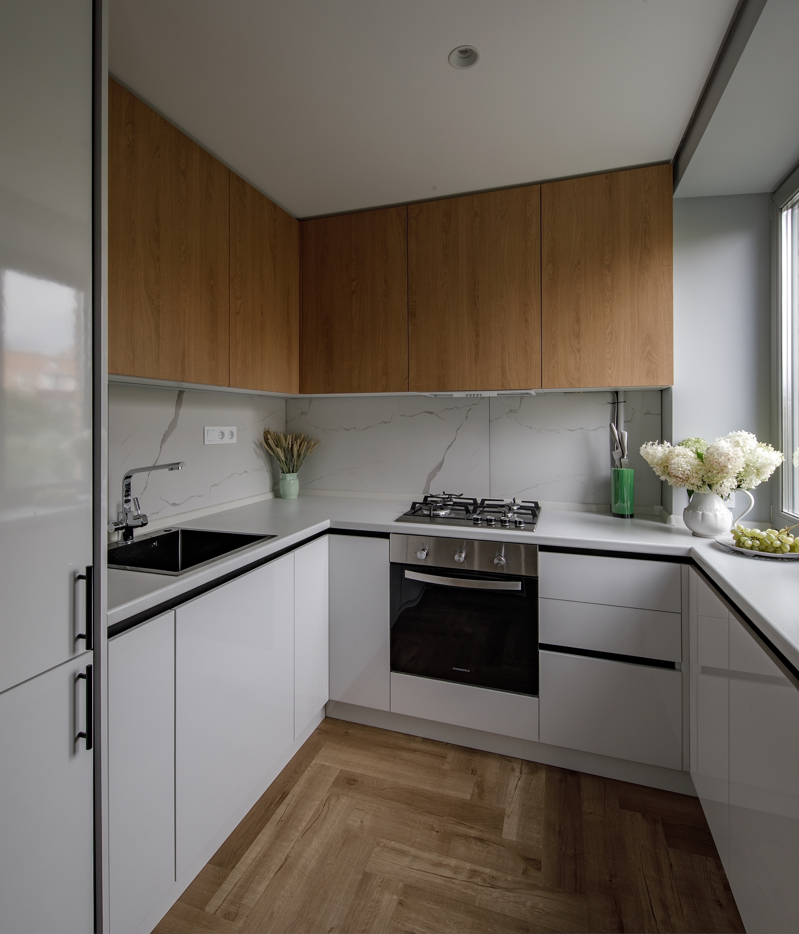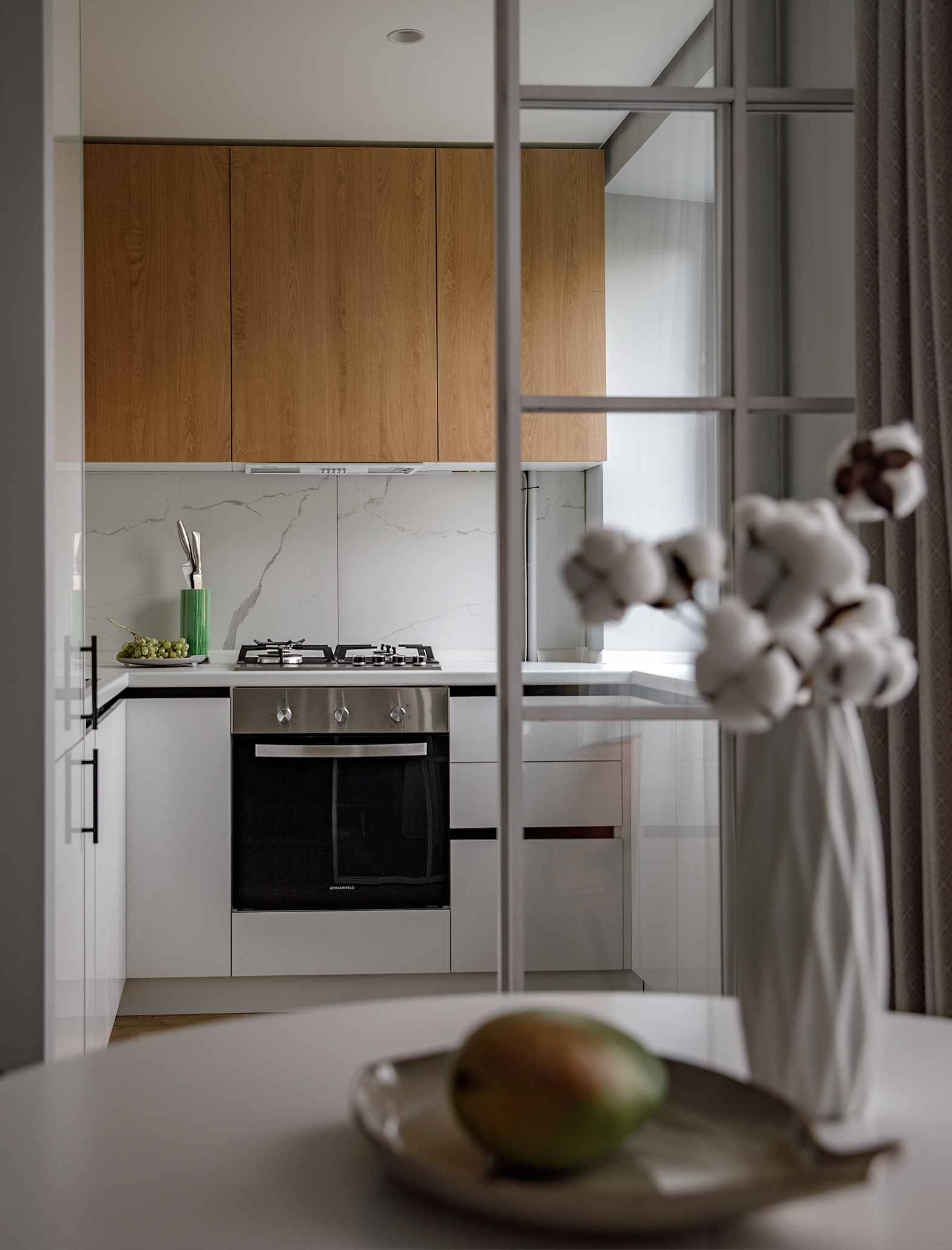 Я сразу поняла, какой будет квартира, как только познакомилась с заказчиками. Хозяева - молодая пара с дочкой. Он - спортсмен, она - веган, дочка - гимнастка. Лёгкие, энергичные, весёлые. Интерьер вторит им - светлый, практичный. Здесь есть всё необходимое и нет места лишнему.