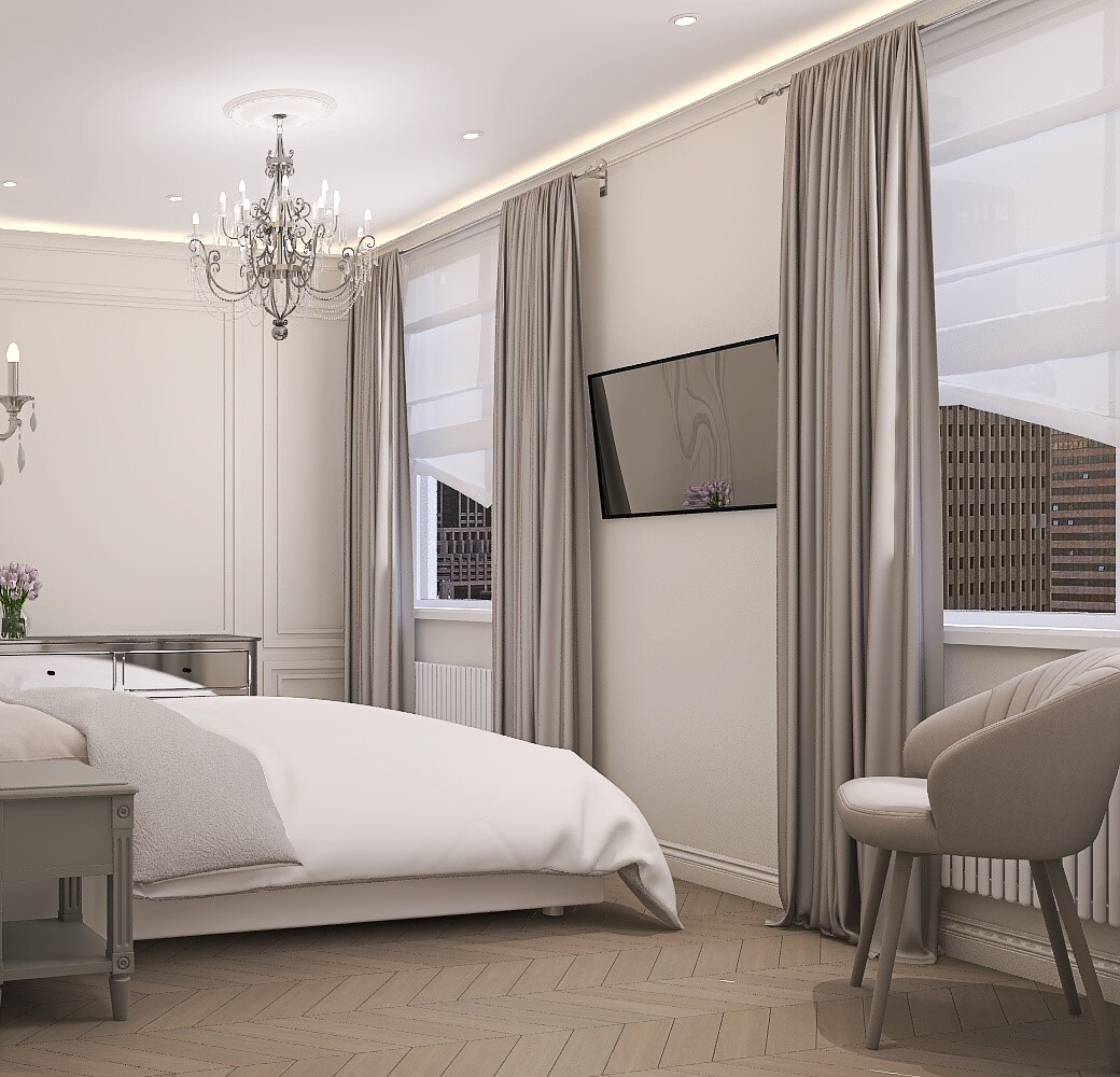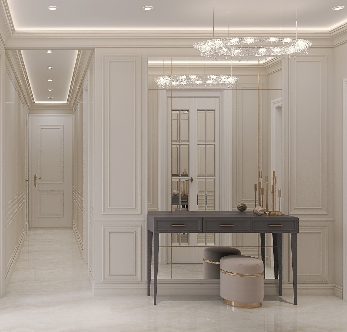 Большая квартира потребовала много времени для разработки и согласования дизайна. Заказчики вдумчиво и скурпулёзно принимали идеи. В результате классика победила и квартира получилась элегантной и функциональной. Сейча проект реализовывается.